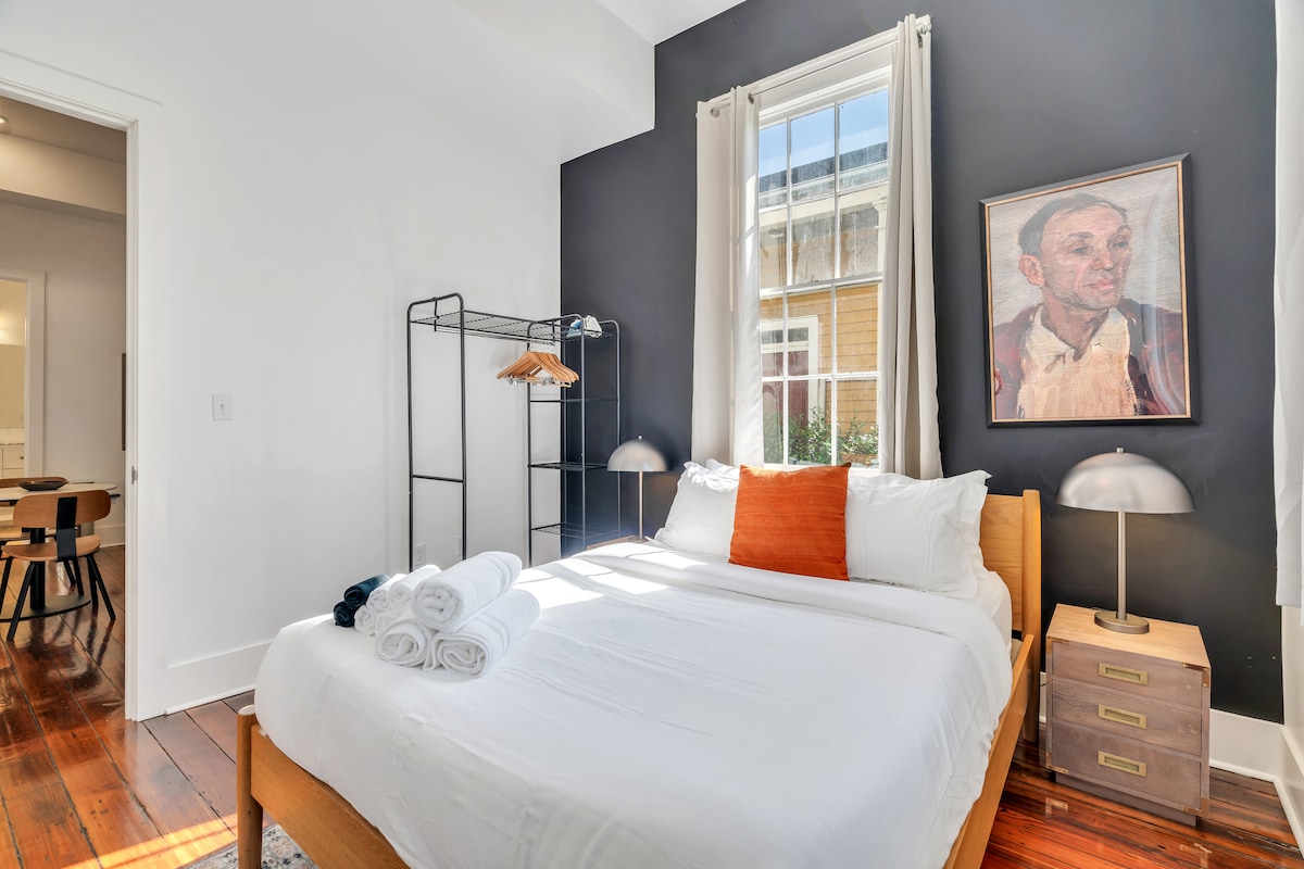 Stay in the heart of New Orleans in this beautifully renovated historic apartment, just blocks from the French Quarter. Bright and spacious with high ceilings and an open layout, it mixes classic charm with modern comfort. Enjoy a king bed, queen sleeper, full bath, washer/dryer, and dishwasher. Walk to top restaurants, bars, markets, Bourbon Street, and the Superdome. Pet-friendly with metered street parking nearby—perfect for an easy, memorable Big Easy stay.