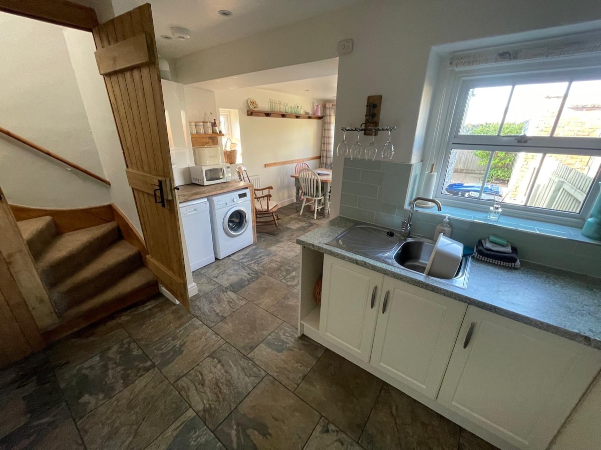 Nuestra casa de campo es pequeña y bonita y nos encanta. Hay una sala de estar con una chimenea real acogedora y un televisor inteligente para que puedas iniciar sesión en tus sitios favoritos (Amazon Prime/Netflix/Disney, etc.) También hay una variedad de juegos de mesa si quieres reducir tu tiempo de pantalla. La cocina tiene todas las cosas habituales: cocina, nevera y congelador, lavavajillas y una nueva lavadora y olla de cocción lenta. Hay 2 dormitorios. El dormitorio principal tiene una cama doble y la otra habitación tiene dos camas individuales. El baño está abajo.