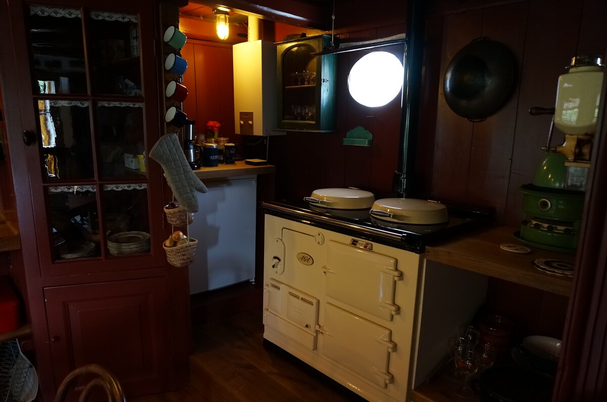Nuestra acogedora casa de vacaciones era originalmente un antiguo establo que nosotros (Caroline y Jan) juntos, llenos de amor y respeto por los detalles y materiales antiguos, hemos convertido en este "Gulle Pracht". A través de un camino privado con aparcamiento, se llega a la terraza con el amplio jardín, un césped con altos árboles circundantes, donde es maravilloso relajarse. A través de las dos puertas abatibles, se entra en el luminoso y acogedor salón con las viejas vigas blancas y una cocina abierta totalmente equipada. Hay internet inalámbrico, TV y DVD disponibles. A través del techo retirado en la sala de estar, entra una hermosa luz desde las ventanas del techo y tiene una vista de la construcción del techo con las viejas vigas redondas. Las camas se encuentran en la parte superior de los dos espacios abiertos. Se puede acceder a la cómoda cama doble a través de una escalera abierta. El otro espacio, donde se puede colocar una tercera o cuarta cama, solo es accesible para los huéspedes ágiles a través de una escalera. No es adecuado para niños pequeños debido al peligro de caídas, los niños mayores lo encuentran emocionante para dormir. Tenga en cuenta que los dos altillos comparten el mismo gran espacio abierto. Bajo las viejas vigas se duerme maravillosamente tranquilo, donde solo se escuchará el sonido de los árboles susurrantes, los pájaros silbando o tu compañero de cama roncando maravillosamente. La habitación está climatizada, pero la estufa de leña también puede calentar la casa de forma acogedora. Le proporcionaremos suficiente leña para que pueda encender un fuego acogedor. A través de una antigua puerta de establo en el salón, se entra en el baño con techo de vigas y calefacción por suelo radiante. El baño tiene una buena ducha, lavabo doble e inodoro. Con sus mosaicos incrustados y todo tipo de detalles divertidos y antiguos, este espacio también es un placer para la vista. Hay dos bicicletas disponibles para dar agradables paseos por los alrededores (Harlingen, Franeker Bolsward). Si lo deseas, podemos llevarte a Harlingen para que cruces a Terschelling. Puedes dejar el coche en nuestro patio por un tiempo. Nosotros mismos vivimos en la granja que está en el mismo patio. Estamos disponibles para ayudarte, informarte y aconsejarte sobre excursiones divertidas en nuestra hermosa Frisia. Tu casa de vacaciones y nuestra granja están separadas por nuestro jardín y el gran granero antiguo (con mesa de billar), por lo que ambos tenemos nuestro propio espacio y privacidad. Kimswerd, situado en la ruta de las once ciudades, es un pueblo pequeño, tranquilo y hermoso donde nació y vivió nuestro héroe frisón "de Grutte Pier". Todavía nos vigila, en forma petrificada, al comienzo de nuestra calle, junto a la antigua iglesia, que sin duda también vale la pena visitar. Puedes hacer la compra en Harlingen, el supermercado está a quince minutos en bicicleta. El antiguo puerto de Harlingen está a 10 km de nuestra casa. Kimswerd está justo al otro lado del dique de cierre. Desde allí, siga las indicaciones N31 Harlingen/Leeuwarden/Zurich y tome la primera salida Kimswerd, en la rotonda la primera a la derecha, en la siguiente rotonda la primera a la derecha, en el cruce siga recto por el puente y la primera calle a la primera a la izquierda (Jan Timmerstraat). Al principio de esta calle, junto a la iglesia, se encuentra la estatua de Grutte Pier. Vivimos en la granja detrás de la iglesia, Jan timmerstraat 6, primer camino ancho de grava a la derecha. -Para los niños pequeños, dormir en el desván sin una valla no es adecuado debido al peligro de caídas. Para los niños grandes es divertido, se puede acceder al desván con una escalera. Tenga en cuenta que se encuentra en un gran espacio abierto sin privacidad.