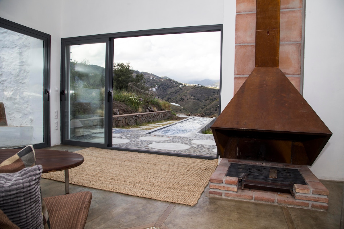 Una hermosa y pequeña casa de campo recientemente restaurada en las estribaciones de las montañas Almijara de Andalucía, diseñada, amueblada y decorada por un escultor y su esposa. Hay una piscina de 9 m de largo, 1,2 m de ancho y 60 cm de profundidad para refrescarse en un jardín hundido, la vista es hacia el norte a Frigiliana un pueblo blanco pegado contra la Sierre Almijara y Este a Nerja en la costa.