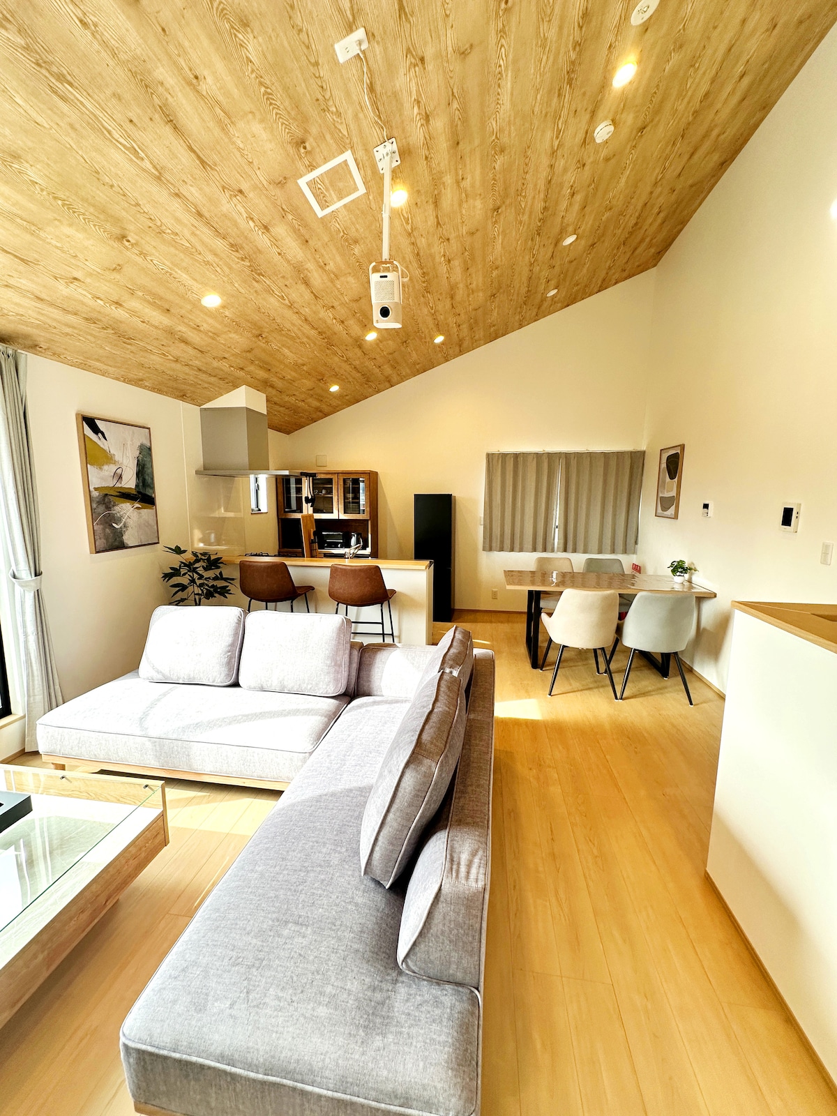 Tsukuyomi es una posada completa ubicada en Fujikawaguchiko-cho, al pie del Monte Fuji. Es un espacio relajante donde la tranquilidad de estar envuelto en la luz de la luna y el diseño japonés moderno están en armonía. Las grandes ventanas ofrecen magníficas vistas del Monte Fuji, y puedes relajarte y verlo cambiar con las estaciones y la hora del día. El interior está limpio y bien equipado, único para un edificio nuevo.Las habitaciones con tatami y la iluminación tranquila alivian suavemente la fatiga del viaje. Tiene capacidad para 5 personas, por lo que es ideal para familias y amigos. Hay supermercados y restaurantes a poca distancia, y es una ubicación conveniente para vivir.El acceso a Fuji-Q Highland y al área del lago Kawaguchi también es excelente. Disfrute de un momento de tranquilidad en armonía con la naturaleza en Tsukiyomi.