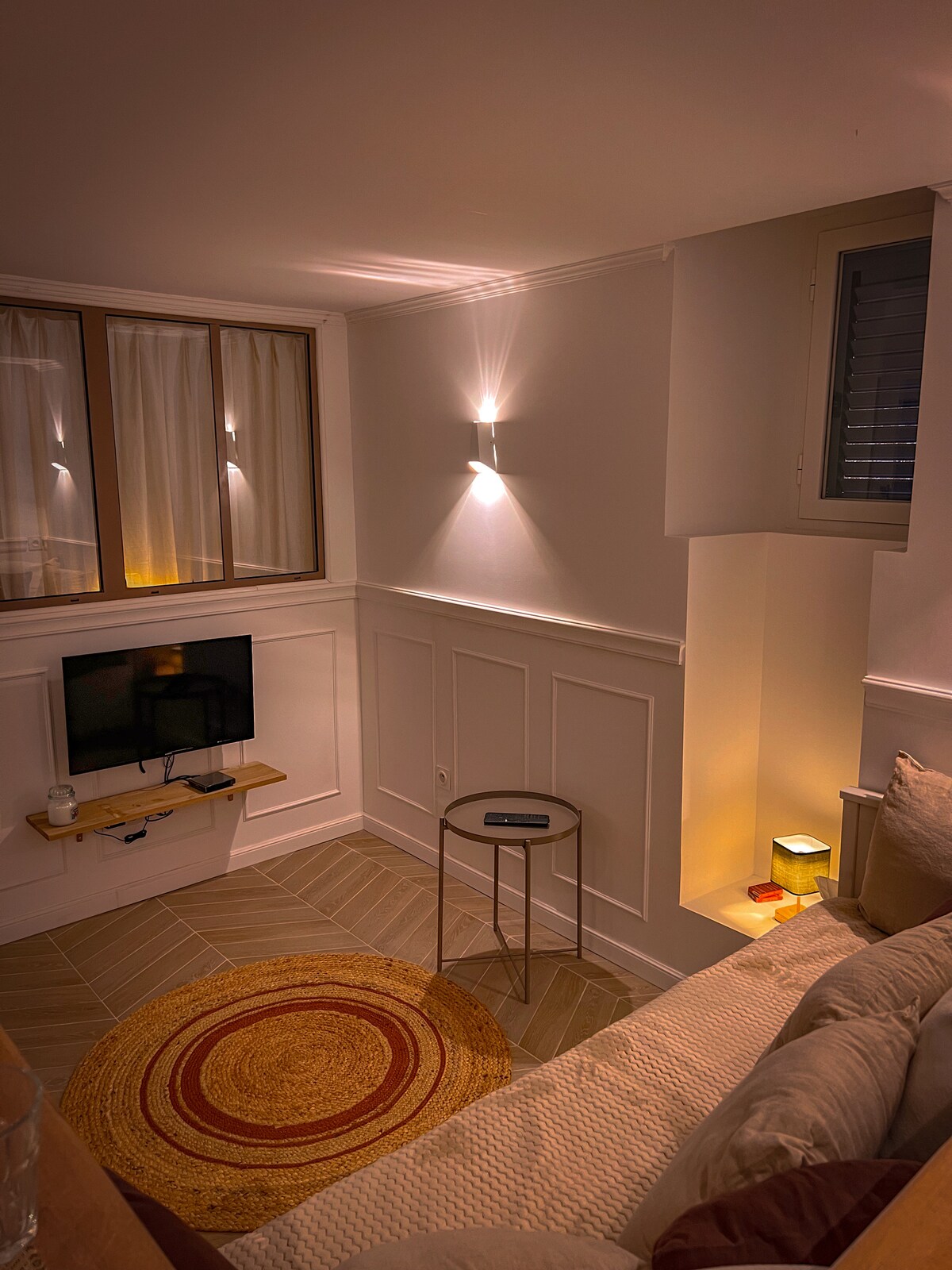 En el corazón del pueblo histórico de Furiani, le damos la bienvenida a nuestro estudio recientemente renovado en una casa de pueblo típica. Está equipado con: - Aire acondicionado - Cocina americana (microondas, placa de inducción, cafetera Nespresso) - Cama de 140/190 - Wifi - Televisión (Netflix) - Terraza independiente Hay ropa de cama y toallas Vistas a la montaña y al mar (estanque Biguglia) Aeropuerto a 15 minutos Playa a 5 minutos Senderismo desde el alojamiento Aparcamiento público cercano