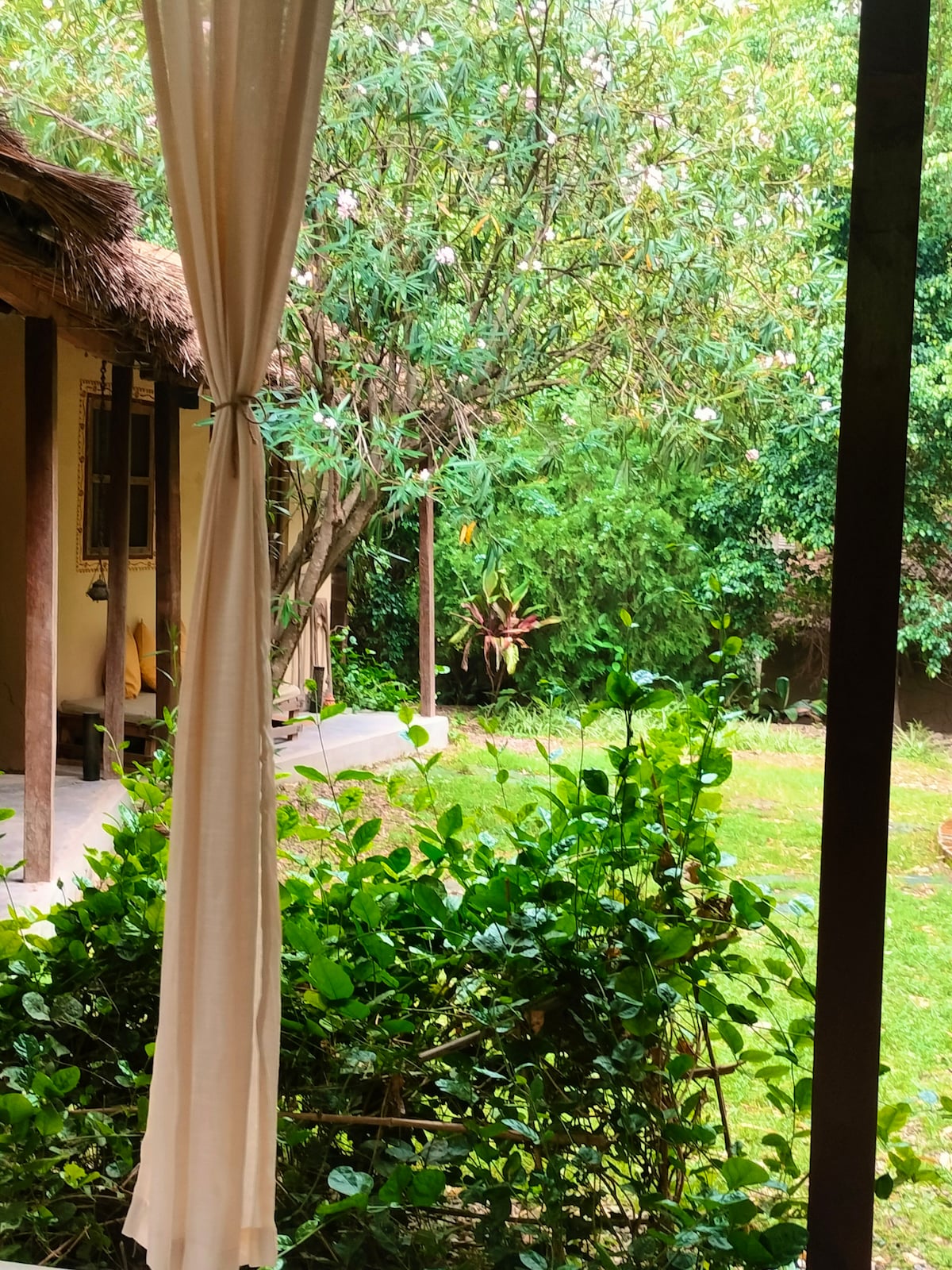 We are situated in a tropical jungle, in a small hidden village, unknown to tourists. A pure and sacred place, only 15 km away from tapovan on the way to Neelkanth temple from the famous city of Rishikesh, known as the 'Yoga Capital' of India. An enchanting city at the footsteps of the Himalayas, at the bank of the famous river Ganges. City of Ashrams, temples, yoga schools and spiritual gatherings, having it's own charm. **Please note the last 400 metres are on foot.**
