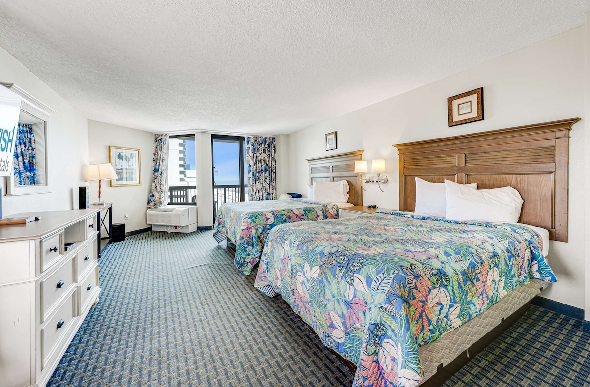 Bienvenido a «The Jaimie's Cove», una propiedad Myrtle Stays en North Myrtle Beach. Increíbles vistas panorámicas de la unidad final Los servicios incluyen: - 2 camas tamaño queen en el dormitorio principal. - Baño completo con tocador doble, inodoro y ducha. - Cocina abastecida: * Frigorífico completo. * Quemadores de fogones * Cafetera de goteo y Keurig * Lavabo * Microondas - 1 sofá cama tamaño queen en la sala de estar. - 3 piscinas al aire libre (climatizadas de temporada) - Río Lazy 350ft - Dos jacuzzis al aire libre - Piscina cubierta y jacuzzi. - Ubicación céntrica.