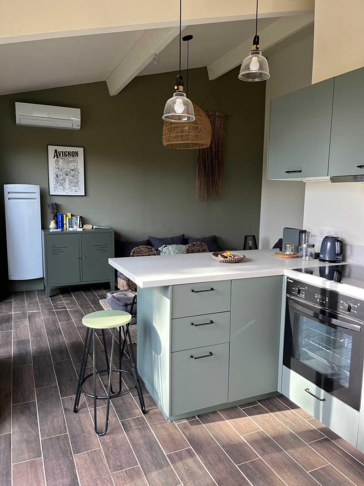 Disfrute de un alojamiento nuevo, elegante y céntrico en el corazón del pueblo provenzal de Graveson. Situado en el cruce del país de Arles, los Alpilles, Aviñón y a las puertas del Gard, este apartamento con todas las comodidades (cama doble , sofá cama, ropa de cama nueva, lavadora, horno, internet por fibra …. ) de 45 m2 es ideal para su estancia y recargar energías en nuestra hermosa región. Un placer recibirles
