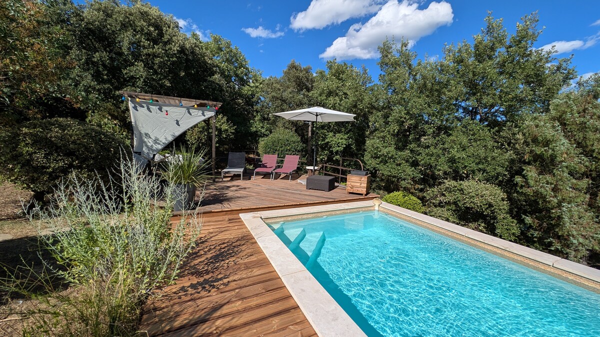 Acunado por el olor de las lavandas en flor, el tomillo, el jazmín, los aromas del sur y el canto de las cigarras, su refugio, enclavado en la cima de una «colina» a la sombra de los pinos, le ofrece un paisaje de lo más suntuoso. Desde el momento en que se despierte, estará inmerso en los campos circundantes, adornados con los tonos anaranjados de un sublime amanecer, que podrá contemplar desde su cama gracias a los grandes ventanales del alojamiento.
