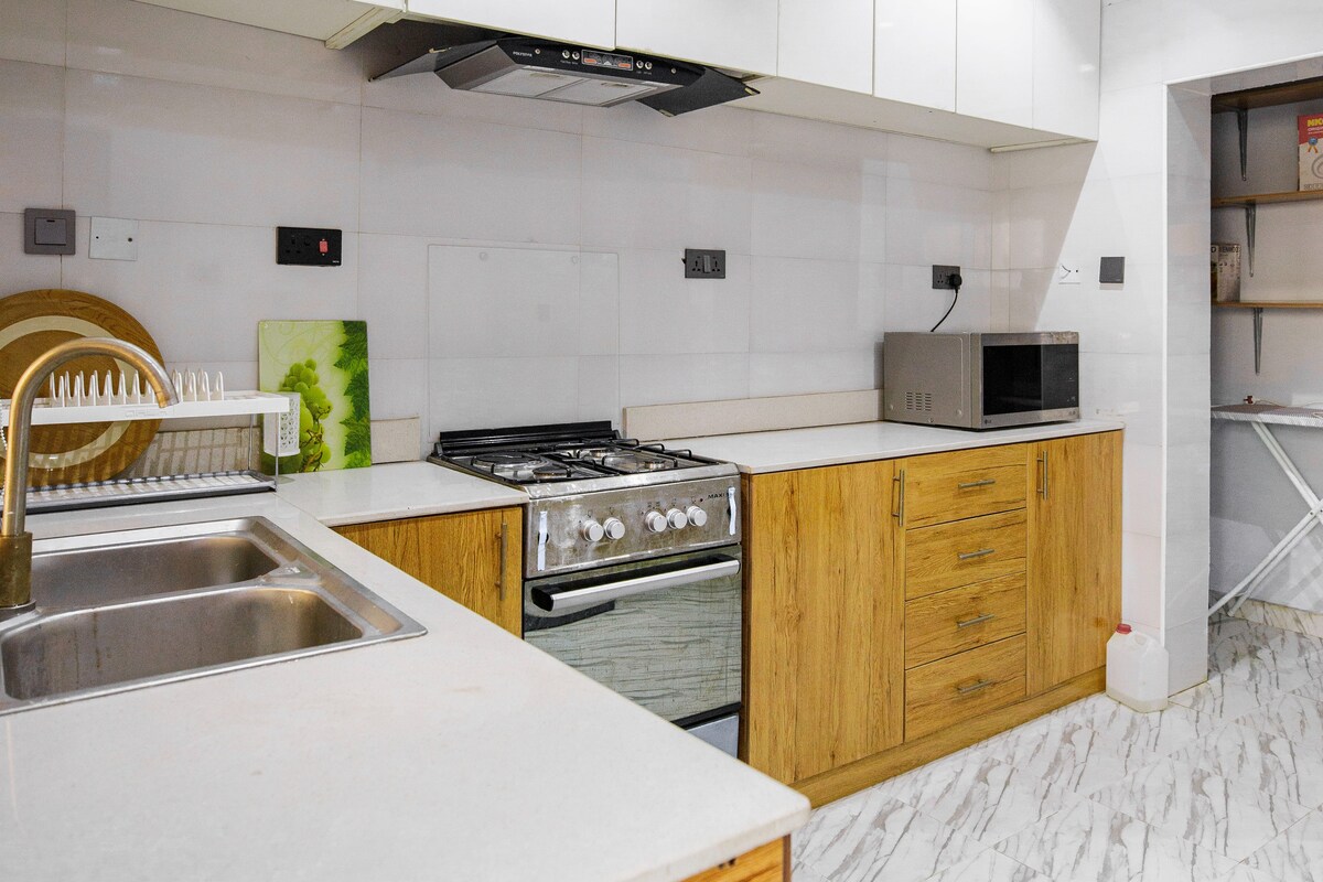 ¡Trae a la familia a este gran lugar con mucho espacio para la diversión y la comodidad! Casa semi inteligente con llaveros. Refrescos y agua complementarios. Cocina totalmente equipada con elementos esenciales para el desayuno. Electricidad 24/7 con generador solar y de respaldo. Wifi gratuito/televisores inteligentes/Xbox 1/Dstv/Netflix/tablero/juegos de cartas. Balcones privados y espacio de estacionamiento. Todas las habitaciones en suite, totalmente climatizadas. Circuito cerrado de televisión, extintor de incendios, botiquín de primeros auxilios Toallas/baño/artículos básicos de limpieza. Lavarropas/lavavajillas