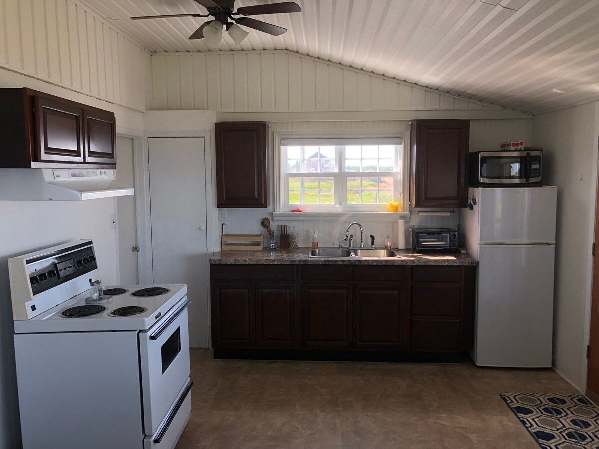 Chaleureux, serein et à 3 km de la ville. Avec vue sur la mer mais sans accès direct, vous entendrez cependant le bruit de la mer et pourrez savourer son parfum salin lorsque vous serez sur le grand patio avec une grande partie moustiquaire. Un accès est cependant possible, tout près au bout de la rue. Il y a aussi un espace pour faire un feu pour animer vos soirées. Que ce soit pour profiter du soleil, la vue imprenable sur la mer vous fera rêver bien après votre départ.