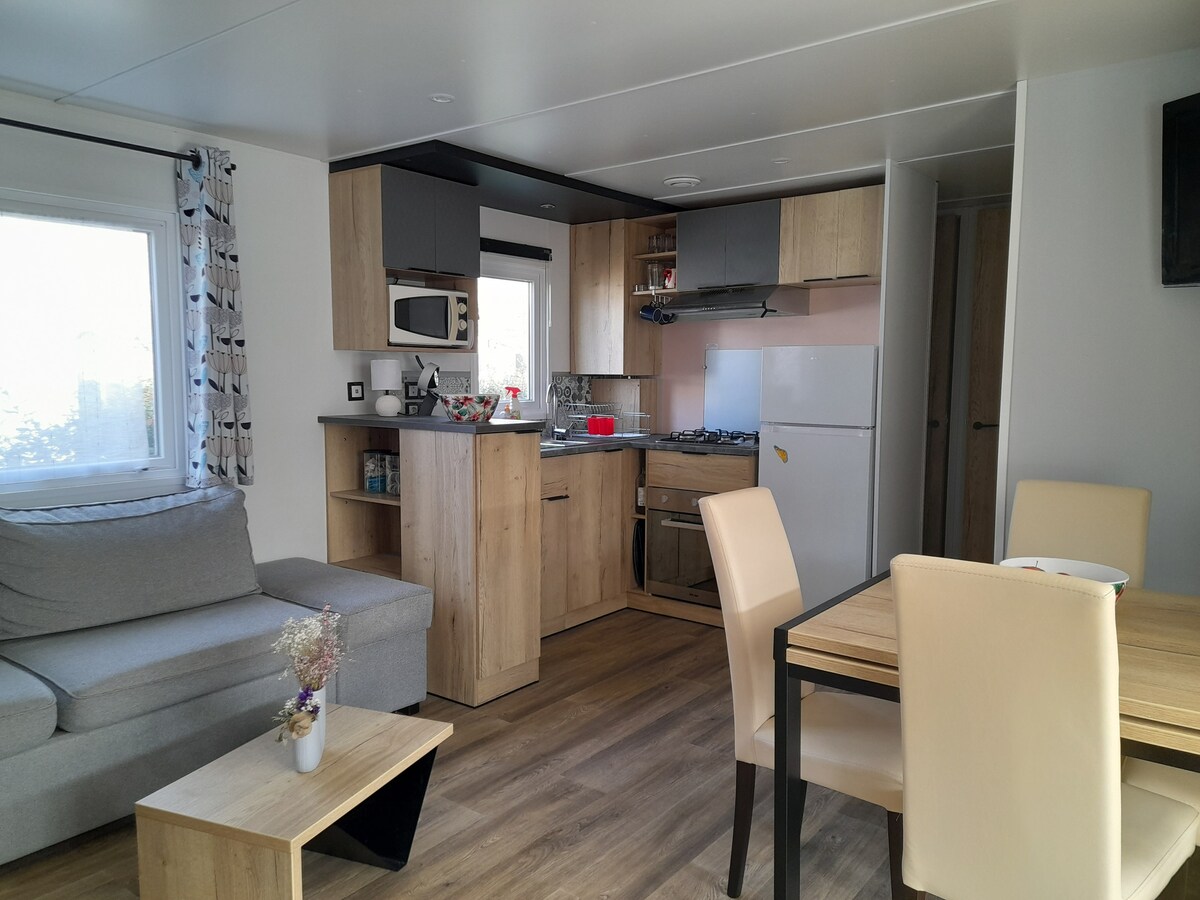 Mobilhome en el límite de una playa privada 6/8 pers