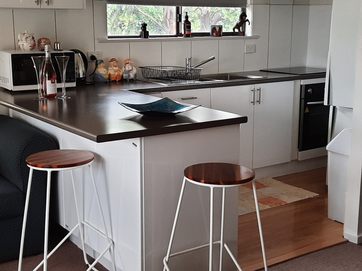 Relájate en este encantador estudio inclusivo y accesible en una granja de pasatiempos en el valle de Barossa, cerca de Adelaide Hills, el histórico Gawler, a 40 minutos de la playa. Basándose en el patrimonio de Barossa, muestra paredes y techo de hierro corrugado recuperado. Cálido pero espacioso y cómodo: cama tamaño queen, cocina americana, aire acondicionado y ventilador de techo. Suministros para el desayuno. Rampa para sillas de ruedas, puertas anchas. Vistas al viñedo, la naturaleza y el jardín. Lugar de picnic, senderos por el monte, bodegas cercanas. LGBTQ+ bienvenido. Perfecto para el romance o un descanso tranquilo.