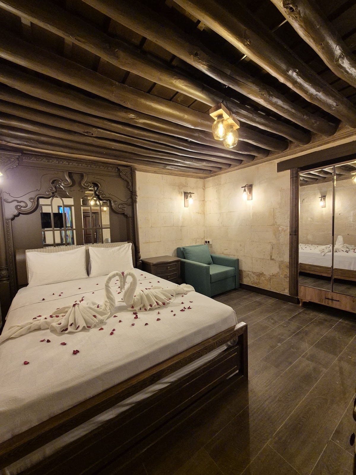Restauración completa (Yeğinoba y Hanımevi) todas con baño. -24 metros cuadrados - Cama doble, número máximo de personas 2. - Vista al patio, techo alto con bordados auténticos, piso de yeso original de Alepo, baño grande. - Primer piso.