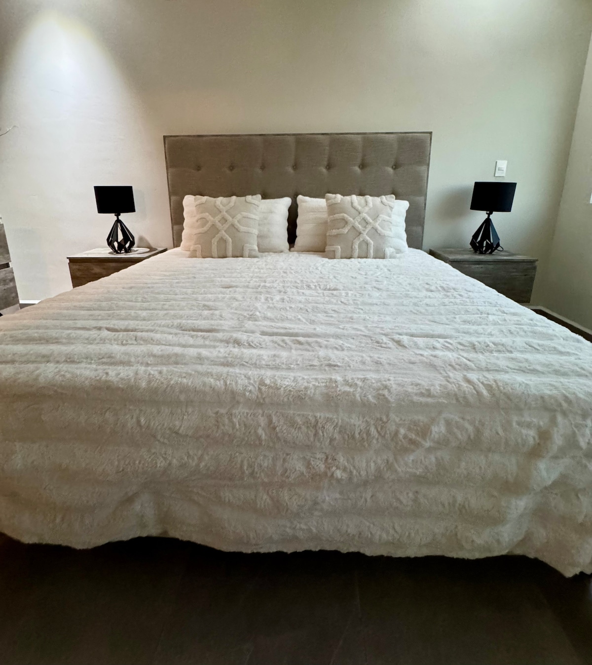 Facturamos. Escápate a una casa cálida, moderna y recién renovada estilo boutique. A 19 min del aeropuerto y 35 min del centro de Monterrey, en privada con vigilancia 24/7, cerca de parques industriales y tiendas. Disfruta baños boutique, recámaras A/C y calefacción, pantallas mini LED de 75” con sonido Bang & Olufsen en sala y recámara. Apps de streaming, Xbox, juegos de mesa y patio con TV, asador y muebles exteriores. Muebles con piedra Saint Laurent. Todo para que vivas una gran experiencia