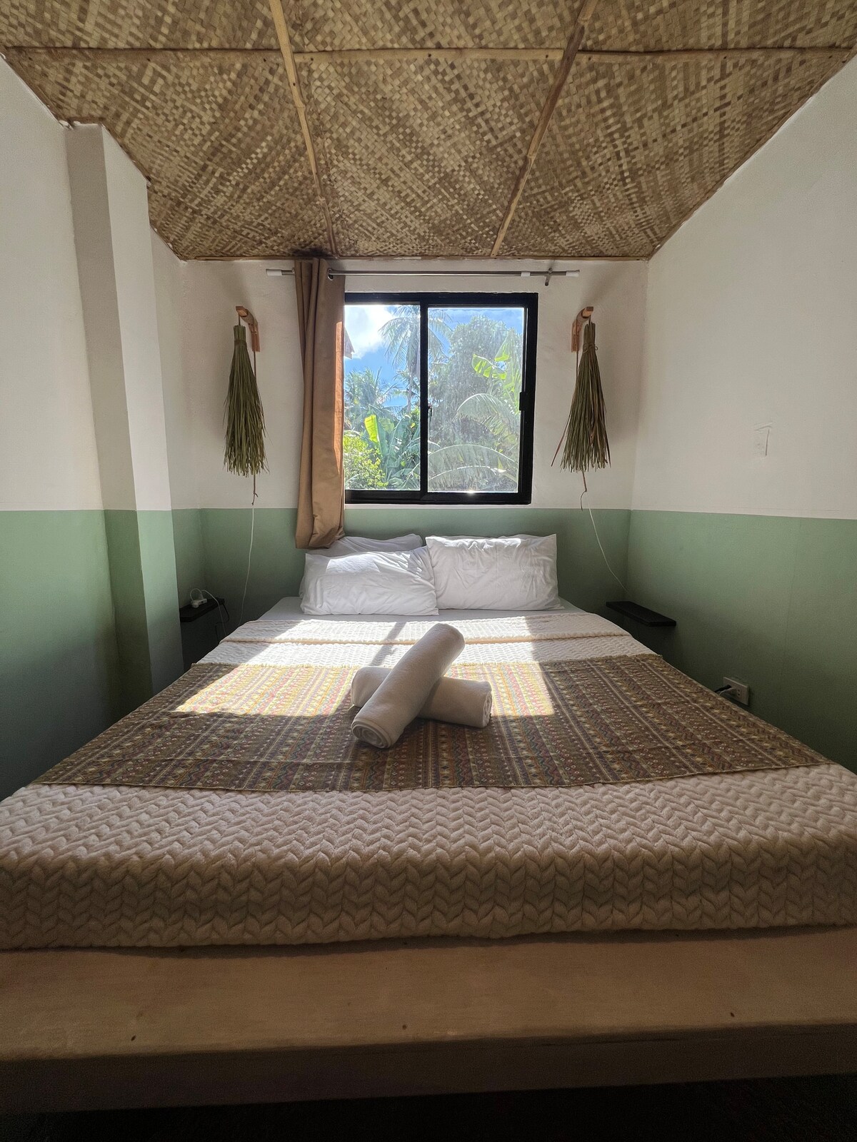 A ★ 5 minutos en coche del centro • A 10 minutos a pie de la playa ★ Para parejas que quieran un lugar tranquilo en la isla. Tiene capacidad para alojar de 2 a 3 huéspedes. ¡Puedes cocinar GRATIS! Servicios: Habitación ✓ con aire acondicionado ✓ Wifi Starlink GRATUITO (hasta 200 Mbps) Inodoro privado✓ adjunto con ducha caliente. ✓ 1 cama doble, colchón en el suelo para el tercer huésped ✓ Toallas, almohadas y sábanas. ✓ Hammocks Uso ✓ GRATUITO de la cocina Agua potable✓ GRATUITA ¡Juegos de✓ mesa! También ofrecemos: ✓ Desayuno Traslado del/al✓ aeropuerto Paquetes ✓ turísticos Alquiler de✓ furgonetas y motos