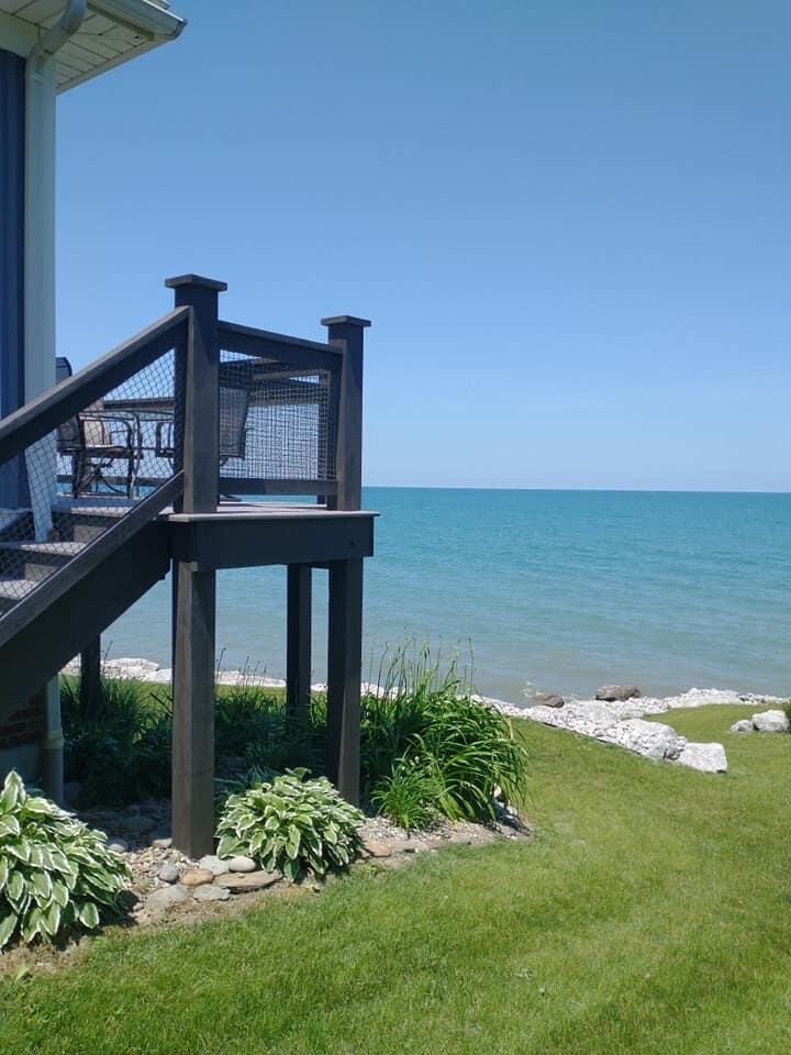Fully remodeled in 2024, LemonDrop Cottage is a Lake-Front property, with direct access by stairwell down to a small private beach directly on Lake Erie. Lake is viewable from the Kitchen or Bedroom windows. All New Windows, Hickory hardwood floors, shower, electric flat-top oven, retro-Fridge, retro-Microwave/Toaster, Keurig, King-size mattress, Twin sofa-bed, BBQ grill (propane provided), and fire pit with wood provided. Cottage built in 1949 as a fishing cottage, adorable Lake-Front Cabin wit