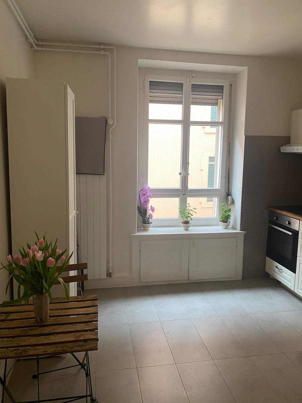 Este acogedor apartamento (75 m2) en el primer piso de un bloque de apartamentos cerca (5 minutos a pie) del Jet d'Eau y a 20 minutos de la estación de tren, está cerca de todas las tiendas de moda, restaurantes y transportes (parada de tranvía Villereuse y parada de autobús 31 Décembre). Cocina con nevera, vitrocerámica y horno, baño con inodoro y bañera, dormitorio con una cama tamaño queen. En este apartamento pueden hospedarse 2 adultos. Toallas incluidas. No se permiten animales.