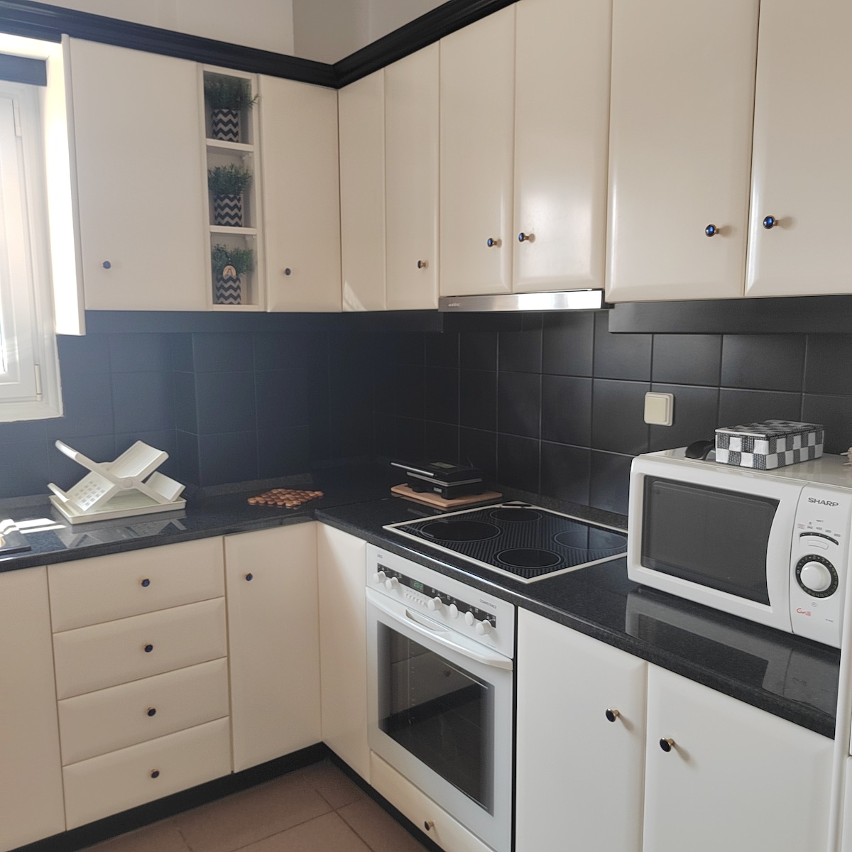 El apartamento está en el cuarto piso de un edificio en la montaña con vistas al mar. Tiene tres dormitorios. Un dormitorio principal y otros dos que están allí son dos baños. Uno pequeño con ducha y otro más grande con bañera de hidromasaje. Su cocina es grande y está totalmente equipada. Por último, pero no menos importante, hay una sala de estar donde encontrarás una mesa de comedor y un cómodo sofá frente a una chimenea de energía para que puedas disfrutar de tu estancia, relajarte y crear noches cálidas y románticas.