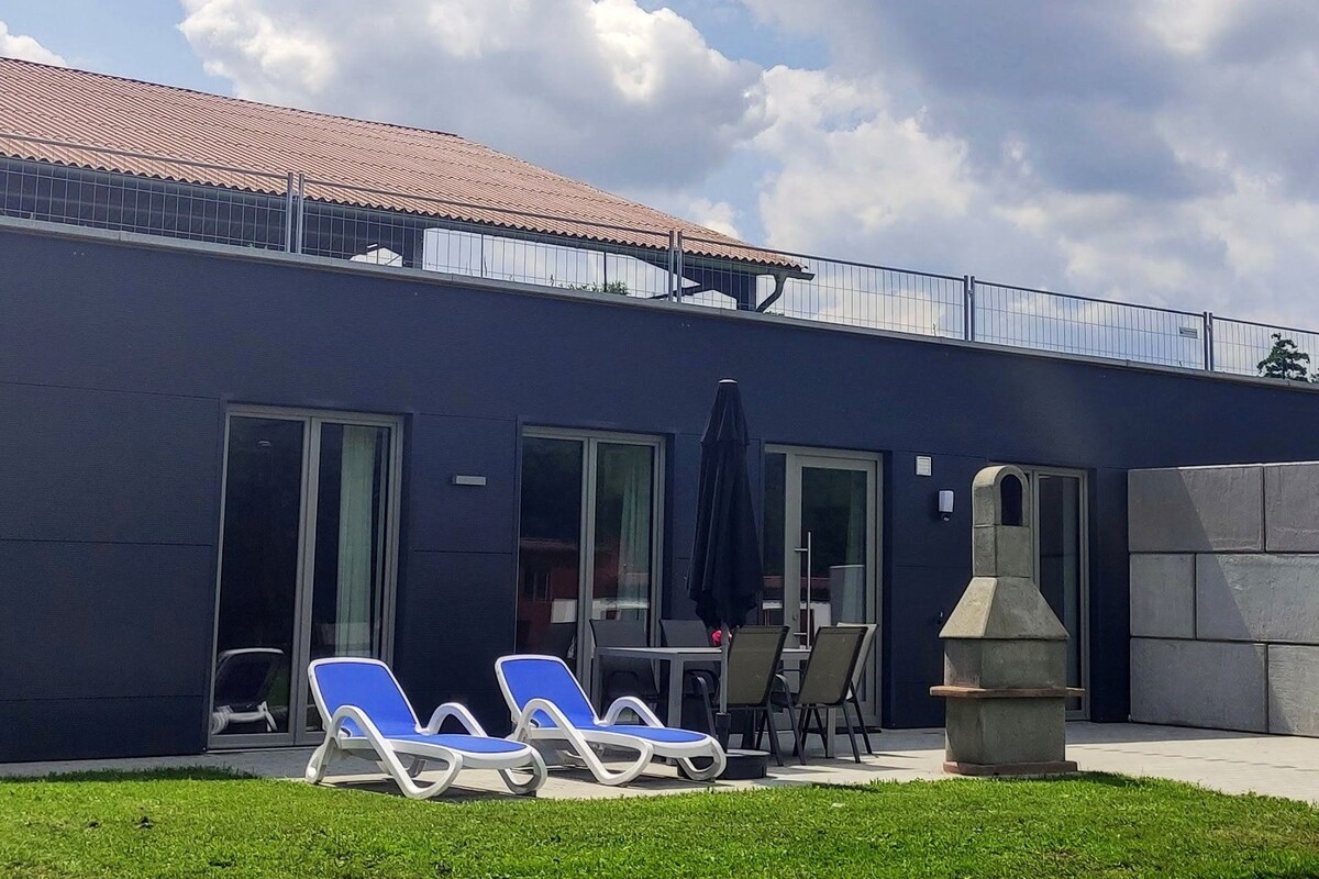 La cabaña (130 metros cuadrados) para un máximo de 7 personas es ideal para familias, vacacionistas activos o amantes de la naturaleza. 3 habitaciones con ovejas, 1 sala de estar, 1 estudio y una cocina totalmente equipada con chimenea ofrecen mucho espacio. ¡La propiedad con gran jardín encantado y terraza solárium te invitan a unas vacaciones maravillosas! El precio por noche se refiere a 2 personas. Cada persona adicional 20 €/noche (para las familias según lo acordado) Se permiten perros de buen comportamiento:-) + 5 € por T