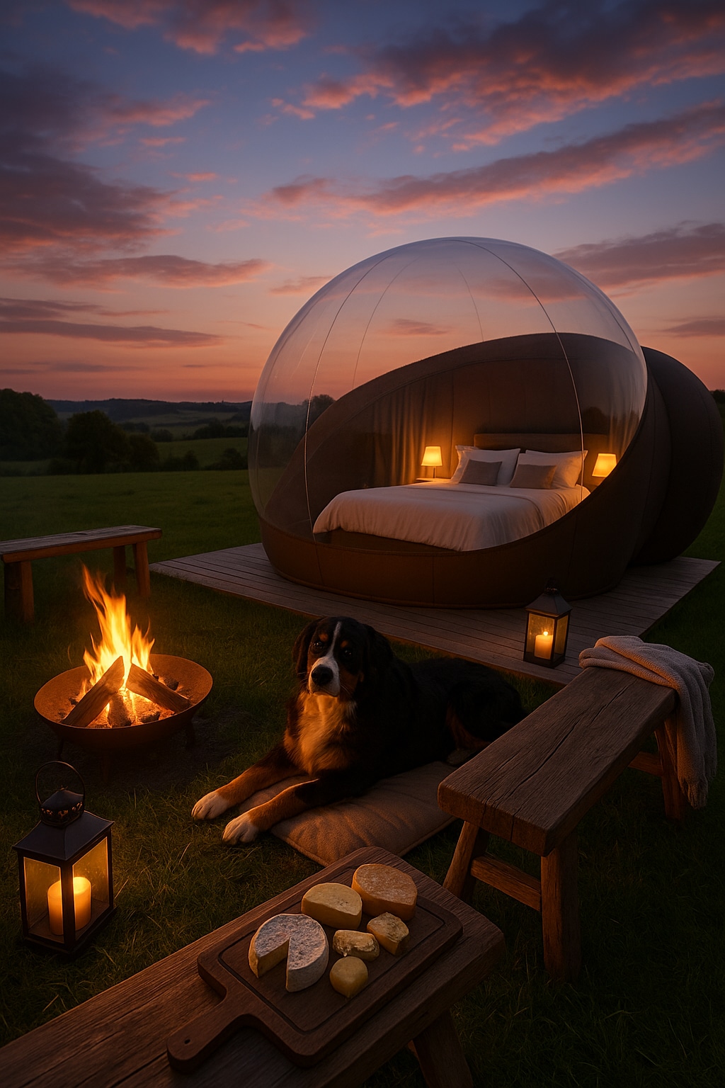 Escápate a nuestra suite romántica y disfruta de una experiencia única bajo un cielo estrellado. Relájate en una bañera de hidromasaje redonda con bordes anchos e hidrojets relajantes, o bajo una amplia ducha de lluvia. Calienta tus noches con una estufa de pellets panorámica, perfecta para crear un ambiente acogedor e íntimo. Todo está diseñado para ayudaros a desconectar de la rutina y a reconectar entre vosotros.