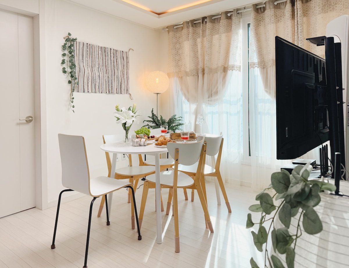 [Yuldam] Bienvenido a Yuldam stay 🌟 Las mejores condiciones nuevas y sensibilidad europea Experimenta la sensibilidad de un viaje a Europa en este espacio francés y de mediados de siglo. Haz una pausa en tu ajetreada vida y dale un momento acogedor y sanador. Un momento único con los 🏠 seres queridos Dos dormitorios independientes y dos camas matrimoniales y una cama súper individual acogedora están preparados para ti. Hay una generosa mesa de comedor para 5 personas, por lo que es el espacio perfecto para cocinar, comer y compartir momentos preciosos con su familia, seres queridos y amigos. Anuncio Ambiente 🛏 cómodo para alojarse • Pasa un día relajante con dos dormitorios independientes y una generosa cocina y comedor. • Con 3 camas, te proporcionaremos el mejor viaje relajante incluso para 5 viajeros. • Relájate en un ambiente relajado con sutil iluminación ambiental e interiores emocionales.