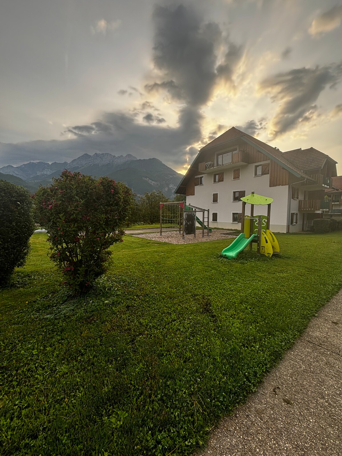 Apartamento en planta baja, funcional y decorado con gusto, ideal para parejas con o sin hijos, entre amigos, en una residencia tranquila rodeada de montañas. La piscina cubierta y al aire libre y la sauna contribuirán a su relajación (gratis) ALQUILER DE BICICLETAS posible en la residencia (de pago)🚴🏼♂️ Pista de tenis y petanca. JUEGOS al aire libre para niños. Muy cerca del campo de golf de Giez, del carril bici, a 5 minutos del lago de Annecy (🚗) Terraza abierta privada.