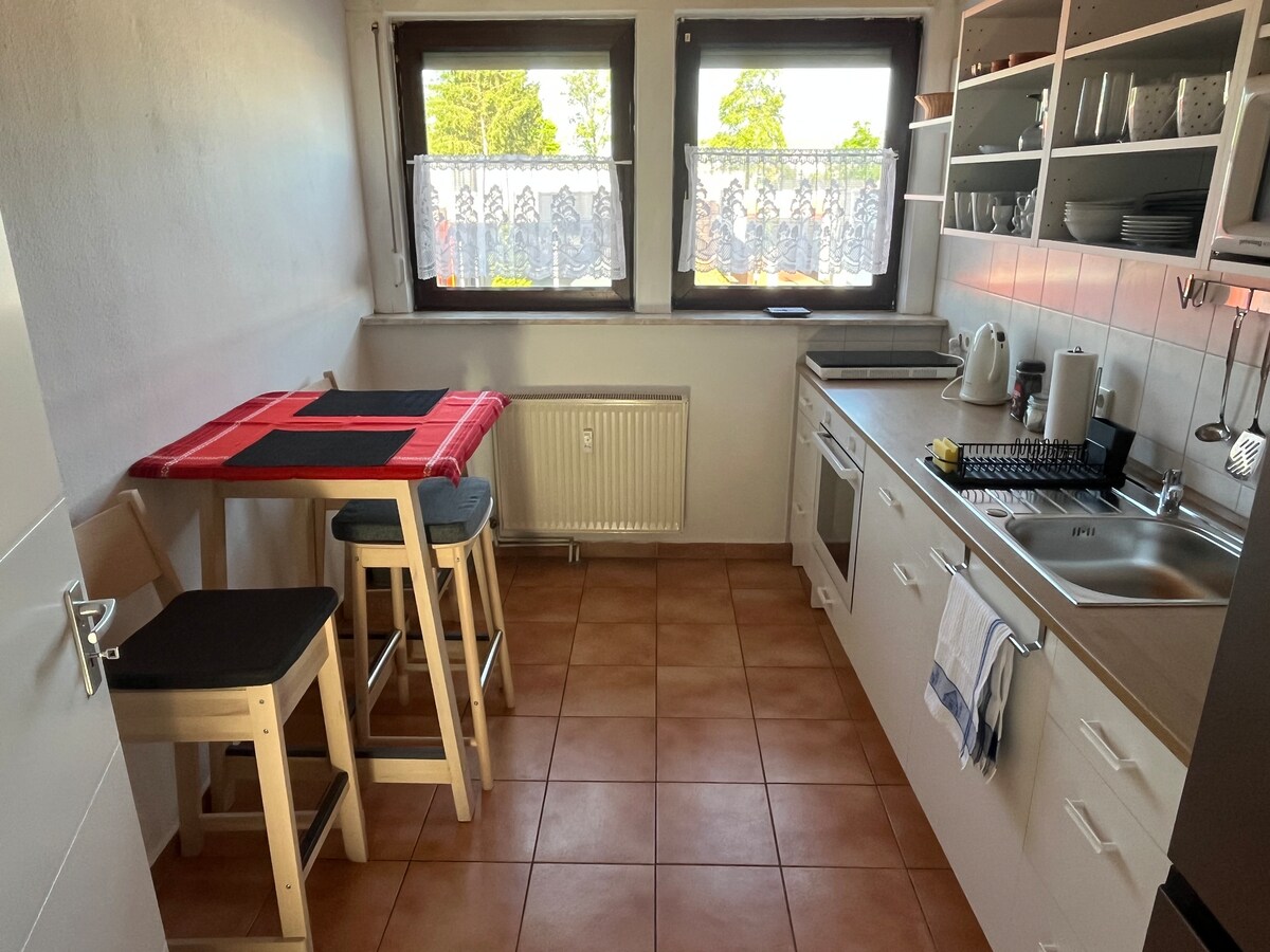 Apartamento de dos habitaciones en una zona tranquila, 48 metros cuadrados de espacio habitable con cocina y baño, entrada independiente. A unos 20 minutos en coche de la Feria de Hannover. Conexión de tren de cercanías Hannover/Hildesheim cada hora. Todas las tiendas en el lugar. Hablamos inglés.