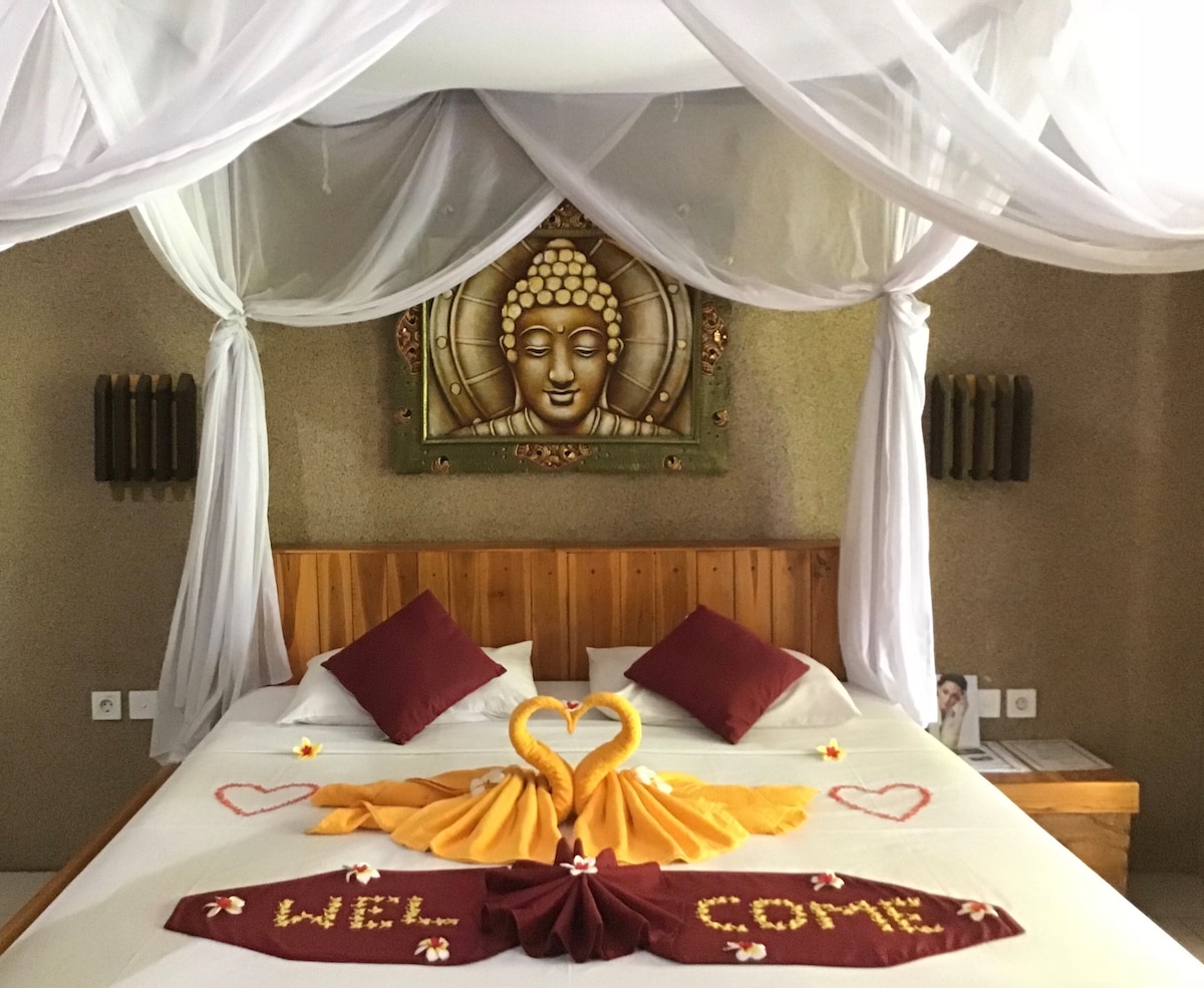 Villa Pulau Dua es una cómoda villa privada con piscina ubicada en Pemuteran (norte de Bali). A poca distancia de una playa salvaje, también está a 10 minutos de la playa de Pemuteran, a 30 minutos del Parque Nacional de Bali y a 1 hora y 30 minutos de Lovina. Un lugar perfecto para sentirte como en casa para personas que viajan solas o parejas que descubren la zona.