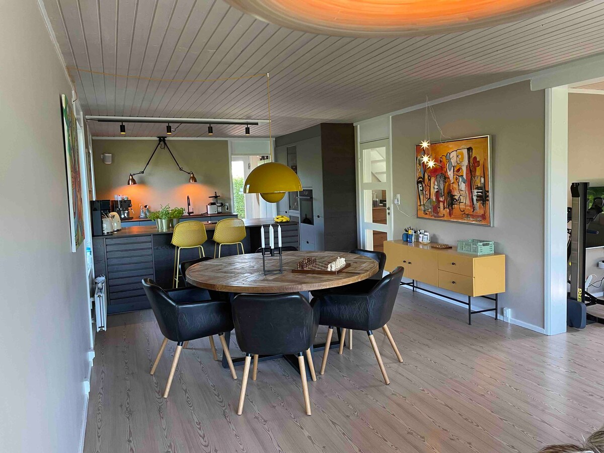 Maravillosa casa de vacaciones situada a un tiro de piedra del agua y la playa. ¡Literalmente hablando! Aquí puedes despertar con el suave sonido de las olas, casi llamándote tu nombre, si te apetece nadar por la mañana. En los días cálidos, puedes disfrutar de comidas en la terraza más adecuadas para disfrutar tanto del sol de la mañana como de una hermosa vista a la puesta de sol. El techo alto en el interior crea una sensación buena y espaciosa que facilita a familiares y amigos disfrutar de la vida juntos durante todas las épocas del año.