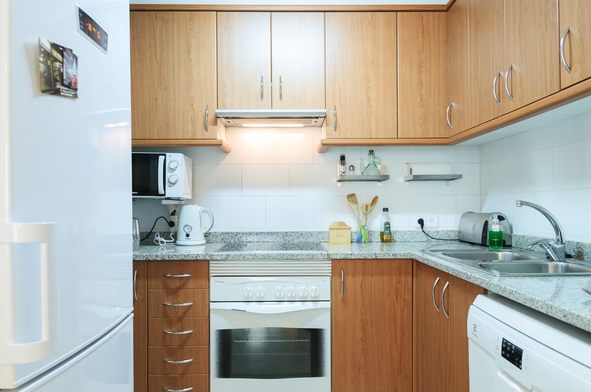 Apartamento a pie de playa, terraza y jardin, wifi