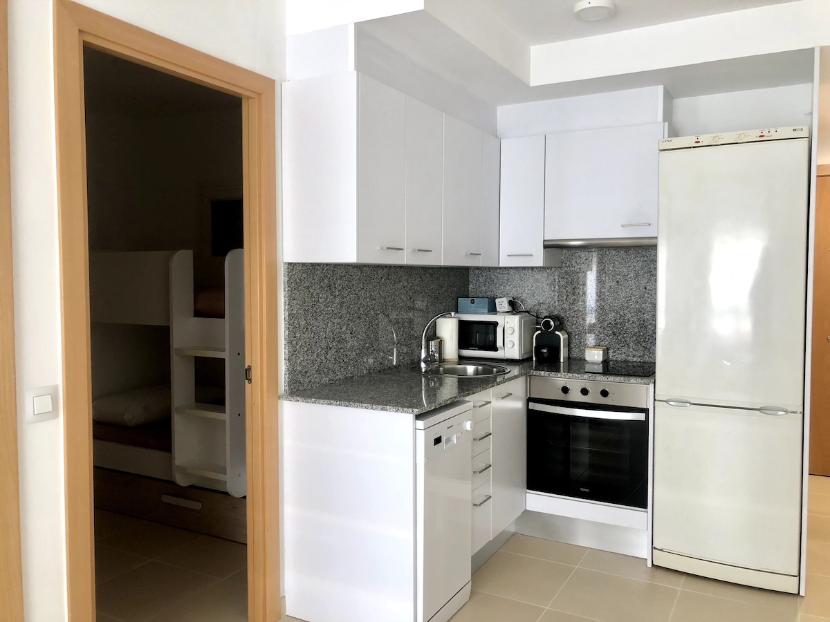 Apartamento con vista al mar Disfruta de hermosas vistas al mar a solo 5 minutos a pie de la playa en este cómodo y bien equipado apartamento. - Wifi rápido y aire acondicionado. -Televisión de 40pulgadas con Netflix - Cocina totalmente equipada. - Ropa de cama, toallas y té/café de cortesía. - Piscina climatizada compartida - Literas adecuadas para niños o adultos menores de 70 kg. Nota: Se requieren escaleras para acceder al área de la piscina.
