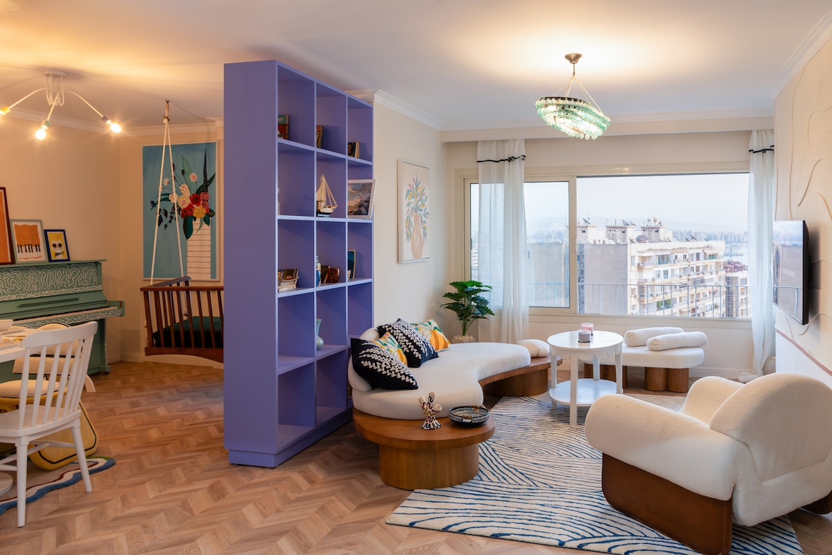 A spacious and bright 3 bedroom apartment in the heart of Maadi, suitable for both professionals and their families on a business visit; or a group of friends discovering the city's hidden gems. It offers a stunning view of the Nile and is located at walking distance to the metro station with direct access to Cairo's neighborhoods. Food stores, restaurants, coffee shops, fitness centers and laundry are nearby and also accessible trough delivery service. Our apartment is ready to welcome you!