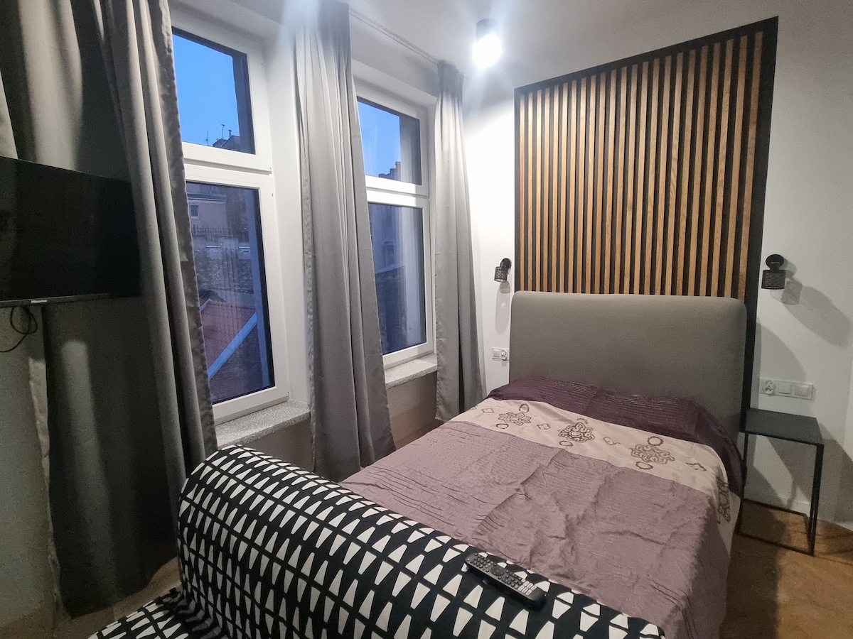 Bienvenido a un apartamento moderno y lujosamente acabado situado en el centro de Toruń, a pocos minutos a pie del encantador casco antiguo. El interior del apartamento está diseñado con atención a cada detalle: muebles elegantes, materiales de acabado de alta gama y accesorios con estilo crean un ambiente único de comodidad y prestigio. El apartamento ofrece espacio para 2 o 4 personas: hay un dormitorio con una cómoda cama y un sofá cama en la sala de estar.
