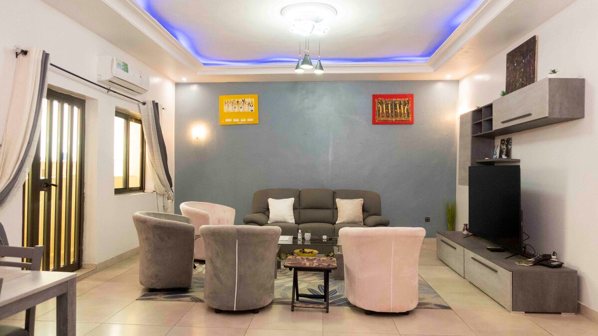 Bienvenue dans votre havre de paix à Fidjrossè ! Cet appartement raffiné de 2 chambres salon a été conçu avec une touche de finesse et d'élégance pour vous offrir une expérience luxueuse à seulement 200m de la plage. Situé au 1er étage avec balcon, vous pourrez même admirer la vue sur la plage depuis le balcon du 3ème étage. À 10 minutes de l'aéroport et dans une zone calme et sécurisée, c'est l'endroit parfait pour votre séjour au Bénin.