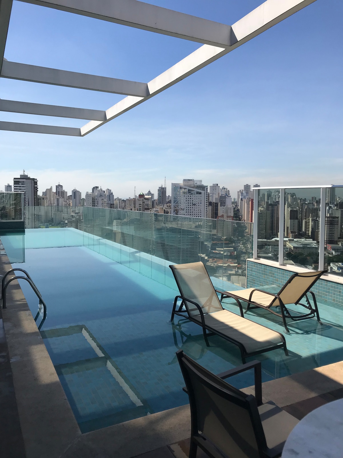 Sinta-se em casa neste Studio moderno e sofisticado, próximo ao Goiânia Shopping, Parque Vaca Brava e Av. Ricardo Paranhos. Na região mais nobre do Setor Bueno. Localização privilegiada, Garagem, Piscina com Borda Infinita e Vista do Rooftop. Aqui você descansa em roupas de cama de excelente qualidade e toalhas 100% Algodão. Para quem é apaixonado por café, máquina Nespresso com cápsulas de boas-vindas, além de cafeteira e pó de café selecionado para quem prefere o método tradicional.