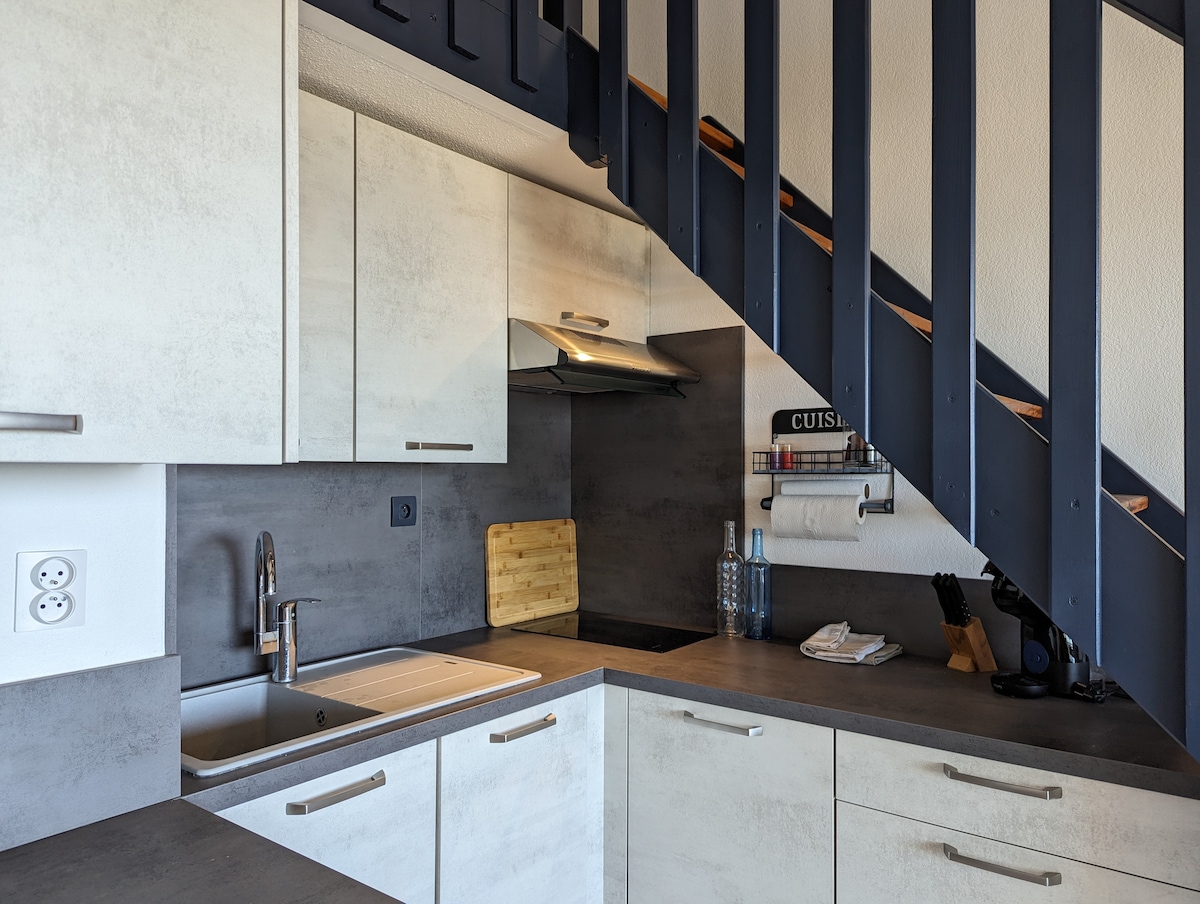 Cabaña en una zona boscosa Mont St Clair, con una terraza con vistas a la ciudad, el puerto y el mar al abrigo de las miradas en 2 espacios privados conectados por una escalera exterior. Nivel inferior cerrado: Habitación de 12 m² con cama de 160, aseo Planta superior: cuarto de baño con ducha, cocina de verano de 6 m², que da a una terraza de 8 m² con mesa Lavandería común con lavadora y secadora Acceso a la piscina comunitaria (no climatizada) de 09:00 a 19:00. Estacionamiento gratuito en el lugar para 1 vehículo