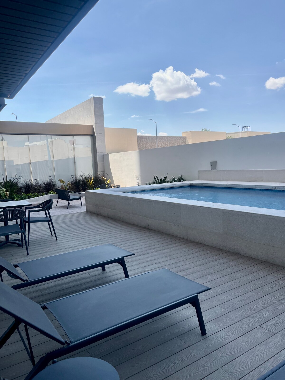 Crea recuerdos únicos que te harán sentir como en casa. Está ubicado en una de las mejores zonas de Torreón, teniendo cerca a pocos minutos plazas comerciales, restaurantes, el aeropuerto. Tiene un rooftop que es ideal para contemplar atardeceres inolvidables, mientras que el gimnasio bien equipado te mantendrá activo.