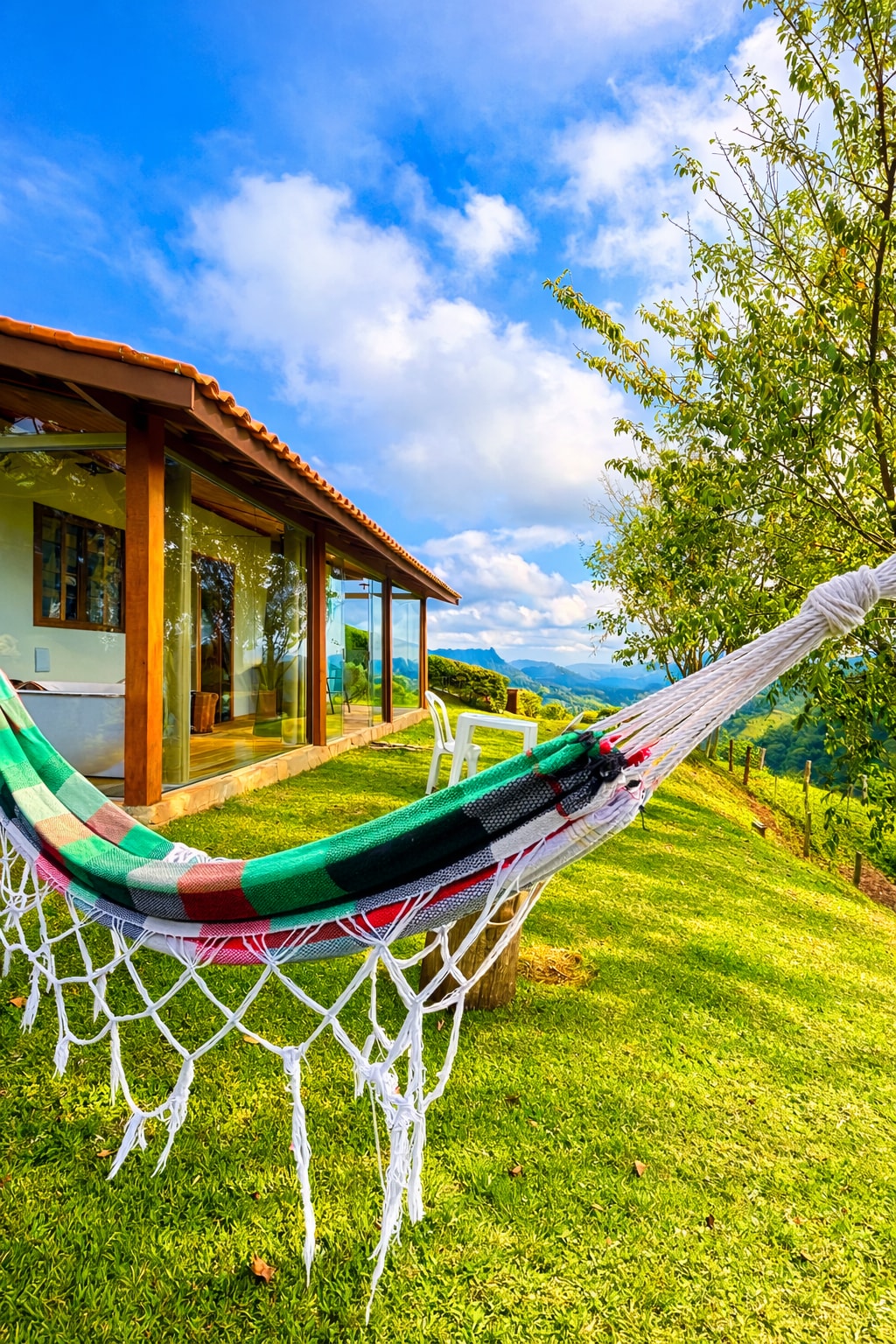Ubicado en una de las montañas más altas de São Bento do Sapucaí, el Chalet nas Nuvens (a solo 20 minutos del centro de São Bento) es una lujosa casa de montaña de vidrio que ofrece senderos exclusivos, una granja con animales, jacuzzi, miles de árboles frutales, parrilla, terraza con el atardecer más hermoso de la región, chimenea, fogatas y magníficas vistas durante todo el año de la Serra da Mantiqueira. Nos gusta llamarlo “el paraíso en la tierra”.