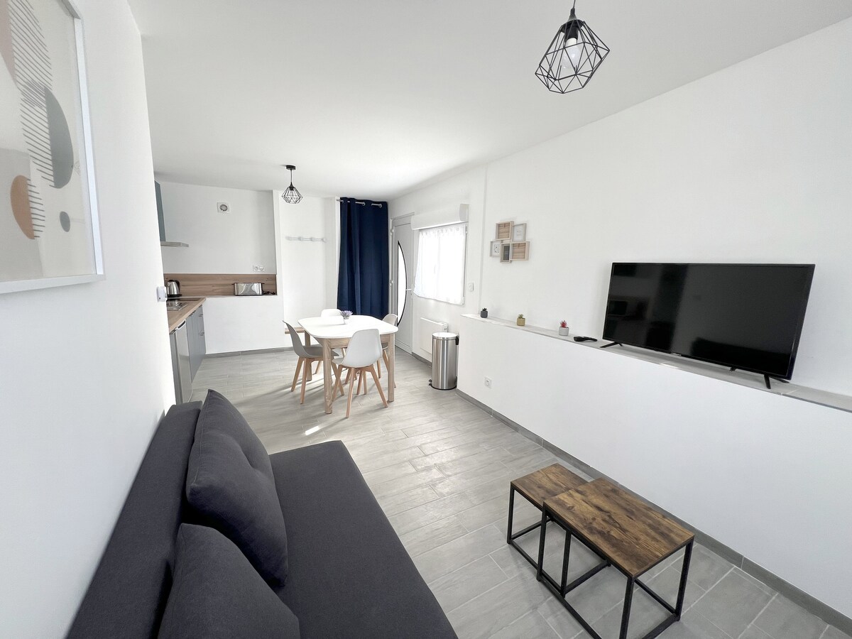 🌿 Duplex cosy avec terrasse – à 5 min d’Angoulême Logement entièrement rénové, idéal pour une escapade à deux ou un séjour professionnel à proximité immédiate d’Angoulême. 📍 Situation idéale : • 5 minutes d’Angoulême • 2 km de la gare • 3 km du centre-ville • 400 m des commerces (boulangerie, bar à vin, restaurants…) 🔑 Arrivée autonome via boîte à clés sécurisée 🚗 Parking privé gratuit ☀️ Terrasse privative Profitez d’un café en terrasse extérieure avant de partir découvrir Angoulême