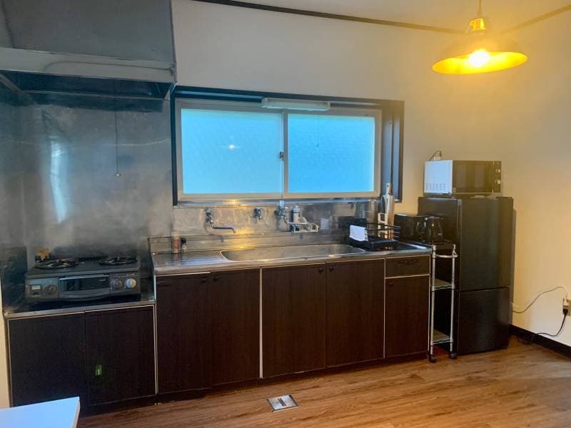 Amplio, iluminado y tranquilo en un bungalow.Hay 8 habitaciones de estilo japonés tatami y 2 dormitorios semidobles con camas semidobles.La habitación de estilo japonés se puede utilizar como dormitorio para colocar futones. Una espaciosa casa de huéspedes adyacente a la casa del anfitrión con mucha luz. Hay una habitación Tatami que se puede utilizar para una sala de estar y/o un dormitorio y otra habitación con 2 camas de tamaño completo. Un baño privado y una entrada privada para los huéspedes. Hay una linda cocina equipada con un fregadero, caldera de agua eléctrica, nevera y microondas. La sala de estar está equipada con aire acondicionado y calentador de espacio.