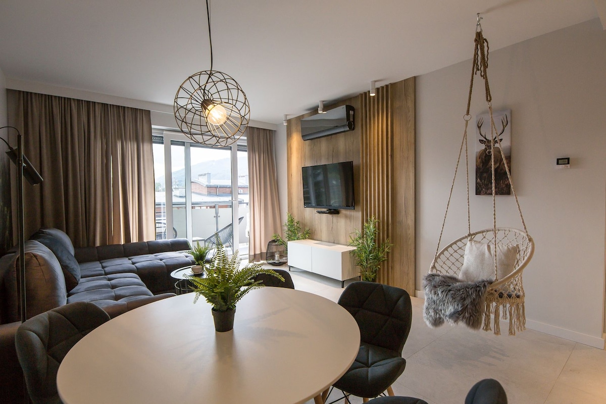 Precioso apartamento renovado con terraza cerca de las montañas y el aeroclub en Bielsko-Biała, donde puedes encontrar todo lo que necesitas y sentirte como en casa. Cocina y baño de alto nivel y calidad. Todos los electrodomésticos y platos necesarios disponibles. Ideal para negocios, eventos deportivos y reuniones culturales durante un breve periodo. Totalmente amueblado con TV inteligente y wifi. Las tiendas más cercanas (Żabka y Lewiatan) están a 150 metros.