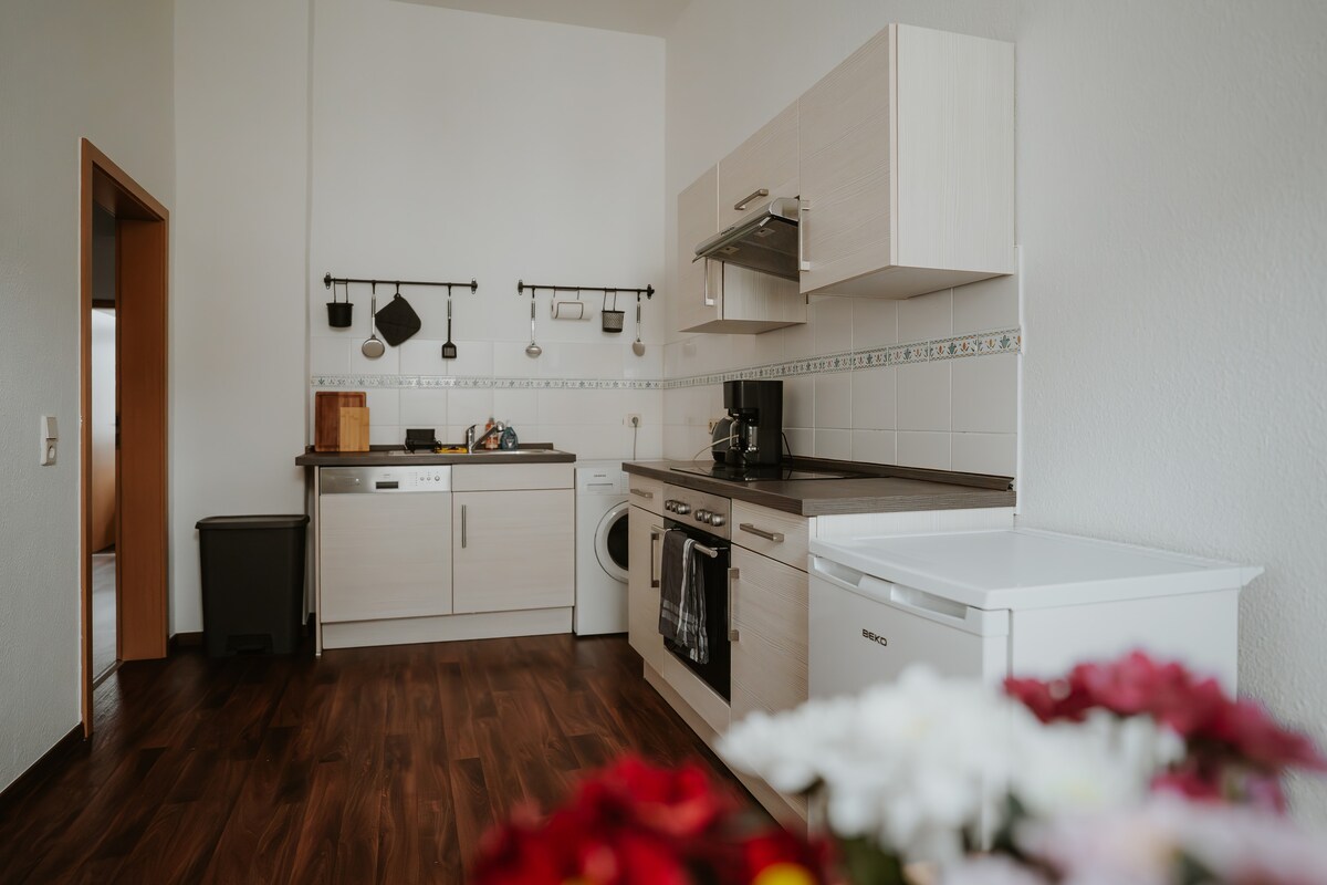Alójate con estilo en el corazón de Zschopau Bienvenido a nuestro moderno apartamento de 2 habitaciones, céntrico, amueblado con buen gusto y perfecto para un máximo de 4 personas. El apartamento ofrece un dormitorio acogedor, una cocina totalmente equipada, un baño con elegantes azulejos de aerosol de montaña y wifi gratuito. Es ideal para parejas, viajeros solitarios o viajeros de negocios. Las tiendas, las cafeterías y la estación de tren están a poca distancia a pie. Estacionamiento gratuito disponible.