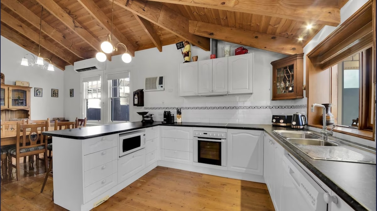 Escápate al paraíso definitivo del entretenimiento en esta casa de diversión totalmente renovada: 4 televisores, spa, sauna, mesa de billar de tamaño completo, mesa de ping-pong, mesa de póquer, 3 fogatas, comedor al aire libre, barbacoa, «cueva de hombres», cocina de chef, jardines, vistas y conoce a los lugareños como cacatúas, canguros y conejos en los jardines. 4 camas con 3 divididas en camas tamaño king: ¡capacidad para 7 personas en lujo total! Despiértate con el canto de los pájaros y los canguros pastando justo fuera de tu ventana.