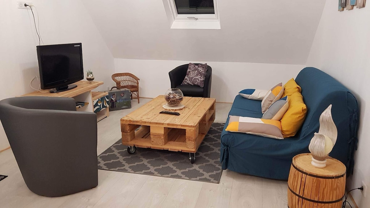 • El apartamento La Mésange • Ubicado en el primer y último piso, alójese solo o en pareja, en un apartamento totalmente renovado y confortable en Esquibien Audierne, a 3 km del mar. Cuenta con una cocina equipada, sala de estar con TV, suite principal con baño adjunto, WC separado. ¡Descubra también La Maisonnette, nuestra otra propiedad de alquiler, que puede alojar hasta 4 personas, con su jardín cerrado y terraza privada!