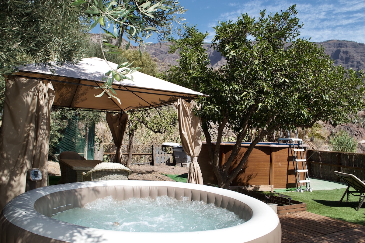 Casa Típica Canaria, con licencia turística, situada cerca de Teror, dentro del Parque Rural de Doramas, a pocos metros de la Finca de Osorio. Dispone de aproximadamente 200 m2 de vivienda, Jacuzzi con techo de cristal, Zona de Barbacoa con cocina propia, Patio canario, área Chill Out y jardines varios. La casa (Website hidden by Airbnb) WI-FI, televisión satélite, hilo musical, lectores de DVD y películas. Cuna y trona disponibles para bebés. Acceso a la finca de árboles frutales, do...