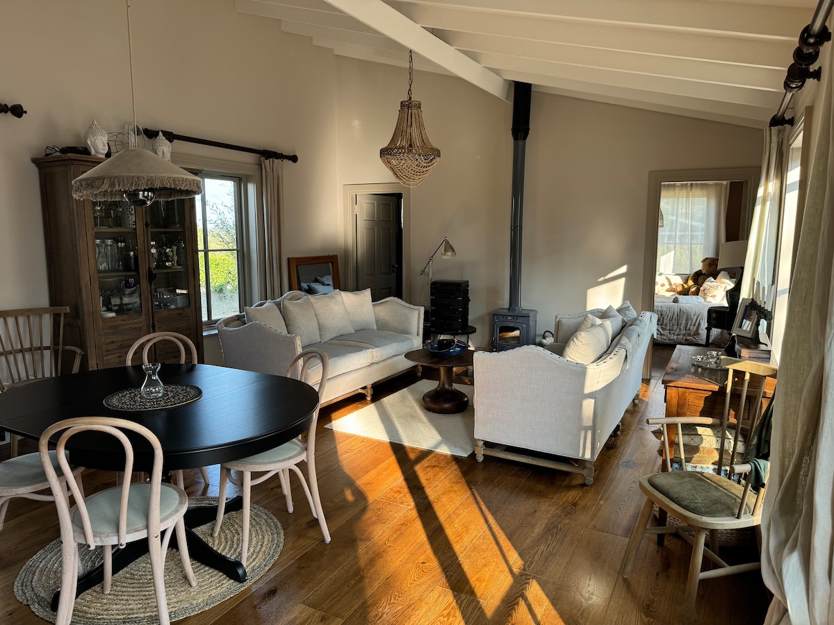 Edificio agrícola elegantemente reformado en el sur de Dublín. Disfruta de la paz y la belleza de nuestra ubicación rural rural irlandesa dentro de la comodidad del transporte público urbano y los servicios del centro de la ciudad. A 20 minutos del centro de la ciudad, a 20 minutos del aeropuerto, a 5 minutos de M50, ubicado en 20 acres de tierras de cultivo orgánicas en la belleza natural de las montañas de Dublín/Wicklow con vistas elevadas a la bahía de Dublín hasta Howth y el mar irlandés. Base perfecta para recorrer el antiguo oriente de Irlanda. También es ideal para eventos de bienestar y ubicaciones de películas.
