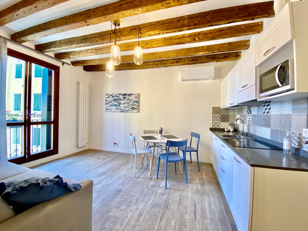 CANAL VIEW NOT TO BE MISSED 👍 The beautiful canal view will make your stay truly unique. Spacious and bright apartment located in the heart of Venice, perfect for experiencing the city like a true Venetian. Elegant finishes, a large living room and a fully equipped kitchen offer comfort and space. Fresh fruit and vegetable markets and a supermarket are just a short walk away. Ideal also for longer stays, with a sofa and a dedicated work area.
