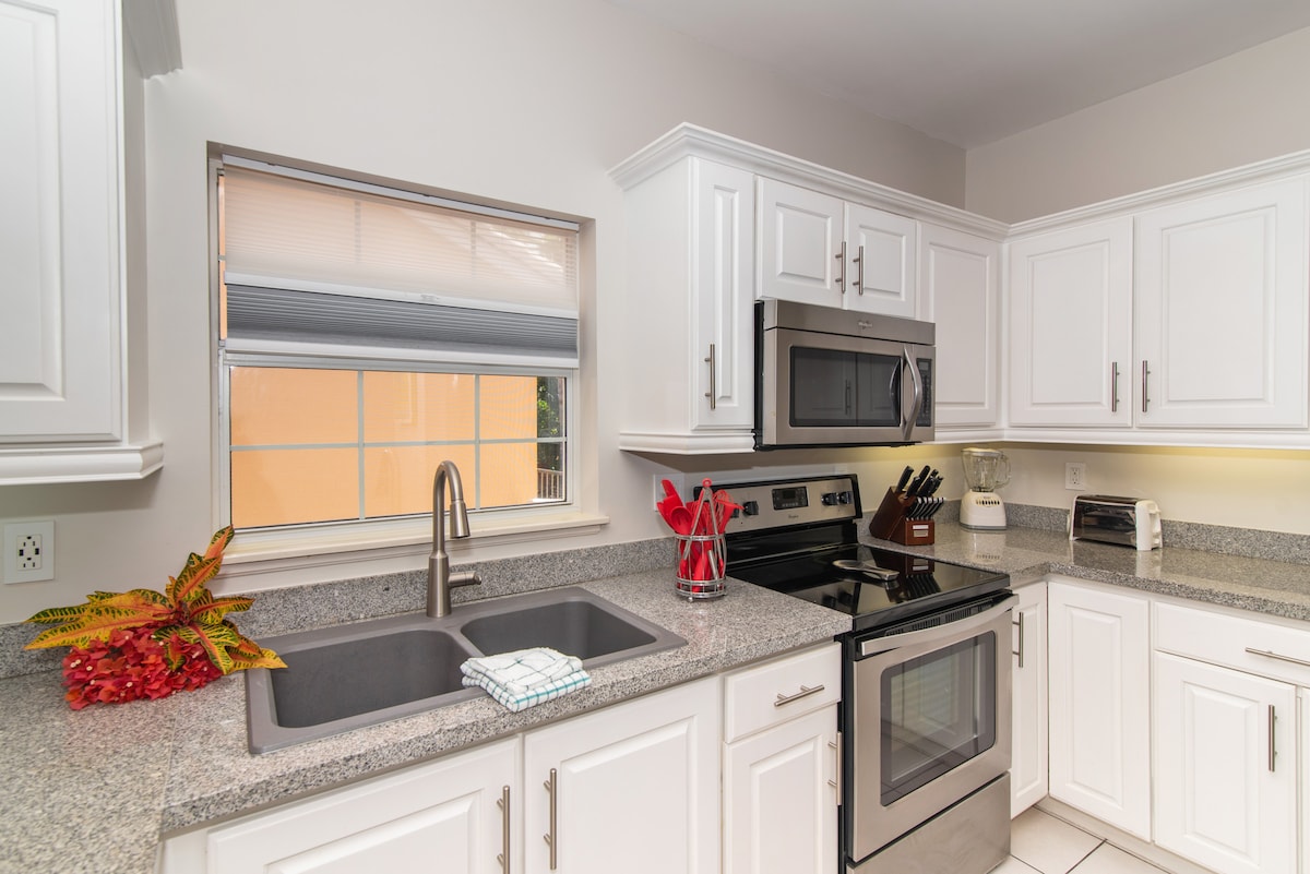 Santuari limpio y contemporáneo con vistas al agua; un apartamento de dos dormitorios/dos baños con cocina completa y sala de estar repleta de todas las comodidades populares (wifi, televisión por cable, Apple TV, Netflix, consola de juegos Playstation, aire acondicionado central, plancha y tabla de planchar, lavadora y secadora, patio al aire libre, piscina y estacionamiento gratuito) - convenientemente ubicado en Grand Harbour. The Shoppes at Grand Harbour y Harbour Walk están al lado. Perfecto para explorar y disfrutar de todo lo que ofrecen las Islas Caimán.