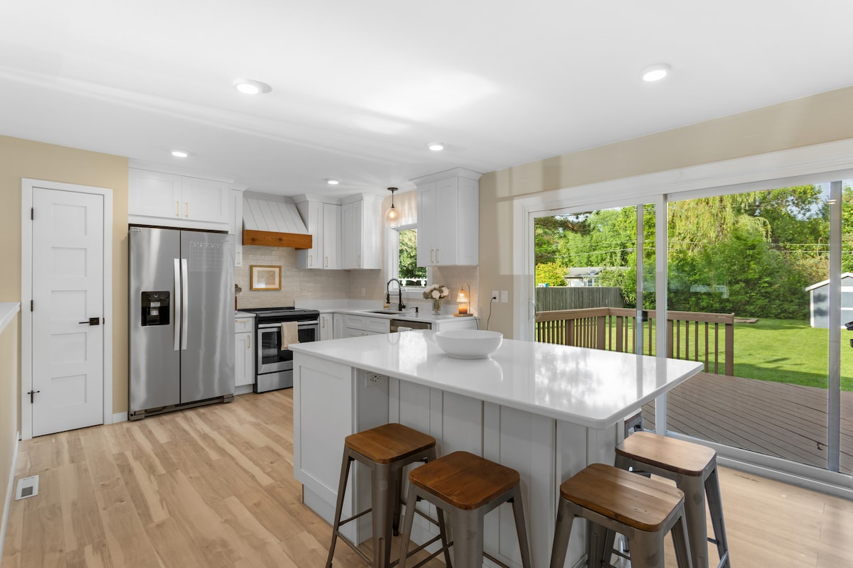 Disfruta de la paz y la relajación en esta acogedora casa recientemente renovada y amueblada. Ubicado en el centro, a poca distancia del hospital/residencia de ancianos, iglesias y el centro de la ciudad, tendrás todo lo que necesitas en tu hogar lejos de casa. La casa incluye un dormitorio en la planta principal con cama tamaño queen, cocina completa, un baño con bañera grande y ducha separadas, lavandería (en el sótano) y dos camas completas (en el sótano). Disfruta de la terraza en verano y de la chimenea de gas en invierno. No se admiten mascotas ni se puede fumar.