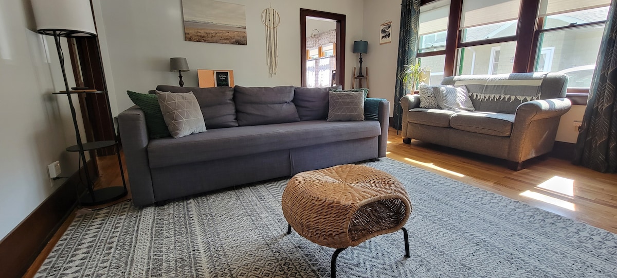 ¡La ubicación céntrica y el patio trasero privado hacen de este un campamento base perfecto en La Crosse! Apreciarás el carácter histórico de la casa junto con las modernas actualizaciones para una estancia cómoda, ya sea que estés visitando la ciudad solo o disfrutando con familia o amigos. Estamos a poca distancia a pie del centro de la ciudad, universidades y hospitales. Tendrás una entrada privada para aparcar hasta 4 coches y nuestro patio trasero vallado está muy bien escondido con patio, terraza y parrilla de gas para disfrutar de tu tiempo en casa.