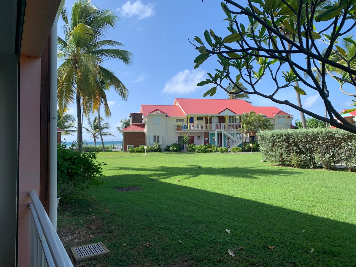 🌴 Exceptional beachfront apartment – Sea view & direct access to Raisins Clairs Beach On the 1st and top floor of a secure upscale residence, with shops and restaurants within walking distance Renovated and air-conditioned: 2 bedrooms with storage, modern shower room, separate toilet, fully equipped kitchen (washer, dishwasher, large refrigerator + freezer, Nespresso & Senseo) Spacious balcony with sea and pool views, equipped with a plancha. Private Wi-Fi, TV, parking, 300-L private water tank