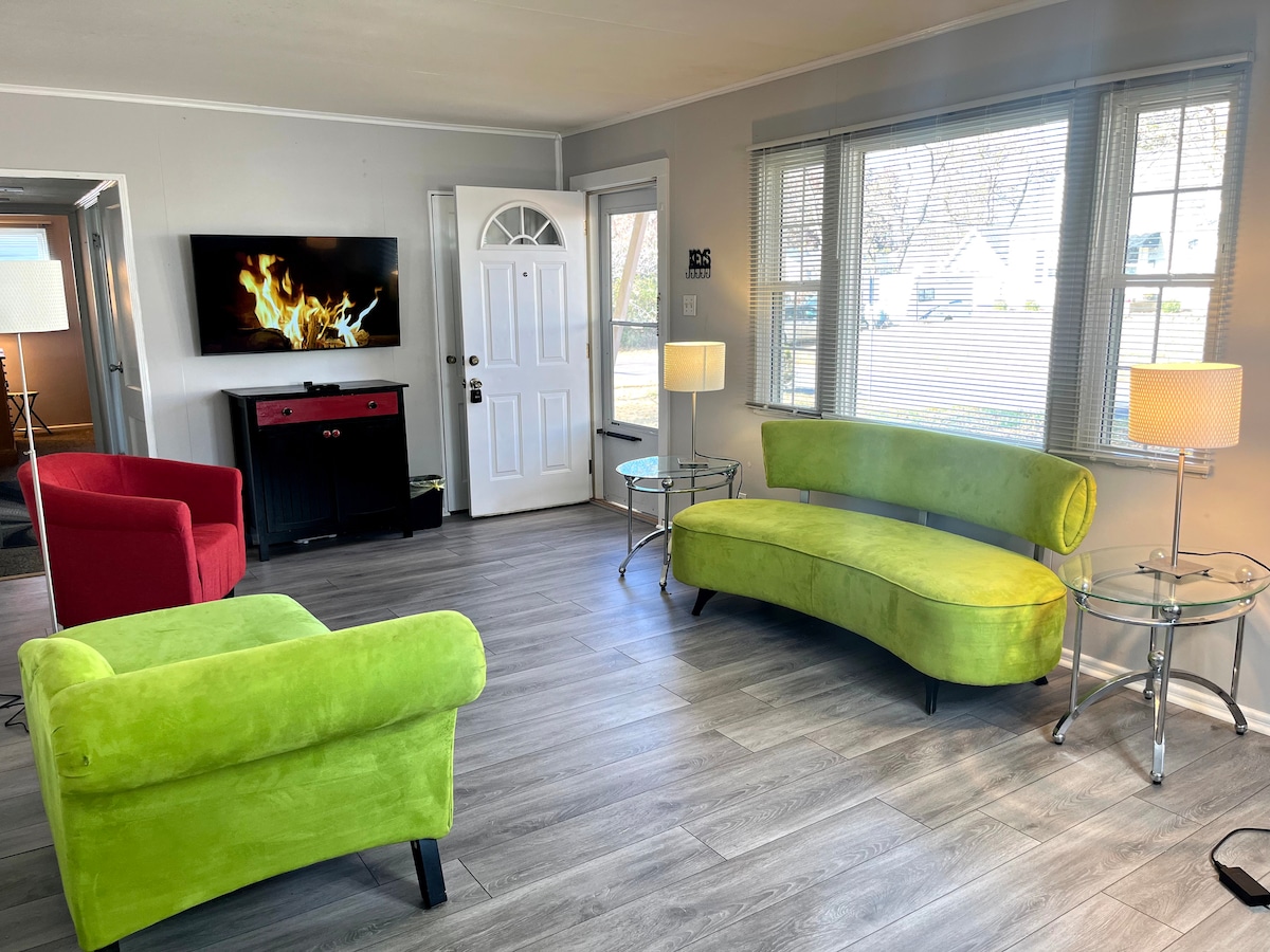 En los acantilados con vistas a Great River Road y al río Misisipi, «459» es un encantador y cómodo bungalow ubicado en el histórico barrio de Christian Hill de Alton, IL. Esta espaciosa casa de tres dormitorios es el escenario perfecto para una escapada relajante, reuniones familiares, tu despedida de soltera o una visita de fin de semana al Casino Argosy. También es el espacio perfecto para un viajero de negocios que necesite una estancia prolongada. Ven a disfrutar de un encantador hogar lejos de casa. ¡Puede que nunca salgas del porche delantero!